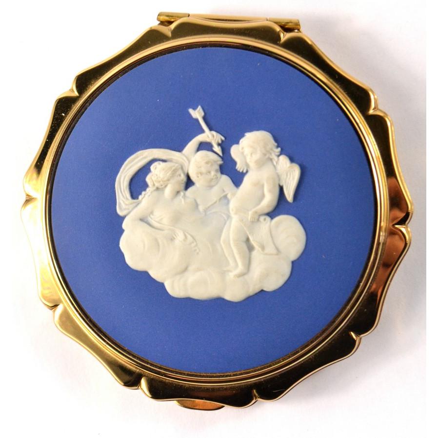 Yellow metal powder case with in a WEDGWOOD and Jasperware style