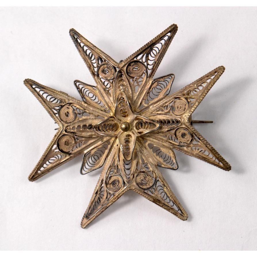 A white metal Maltese Cross style brooch