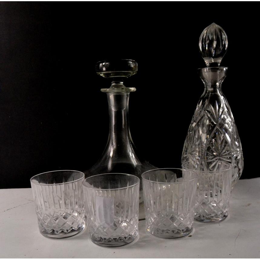 A modern glass ships decanter, an EDINBURGH CRYSTAL decanter and 4 Edinburgh CRYSTAL whisky tumblers