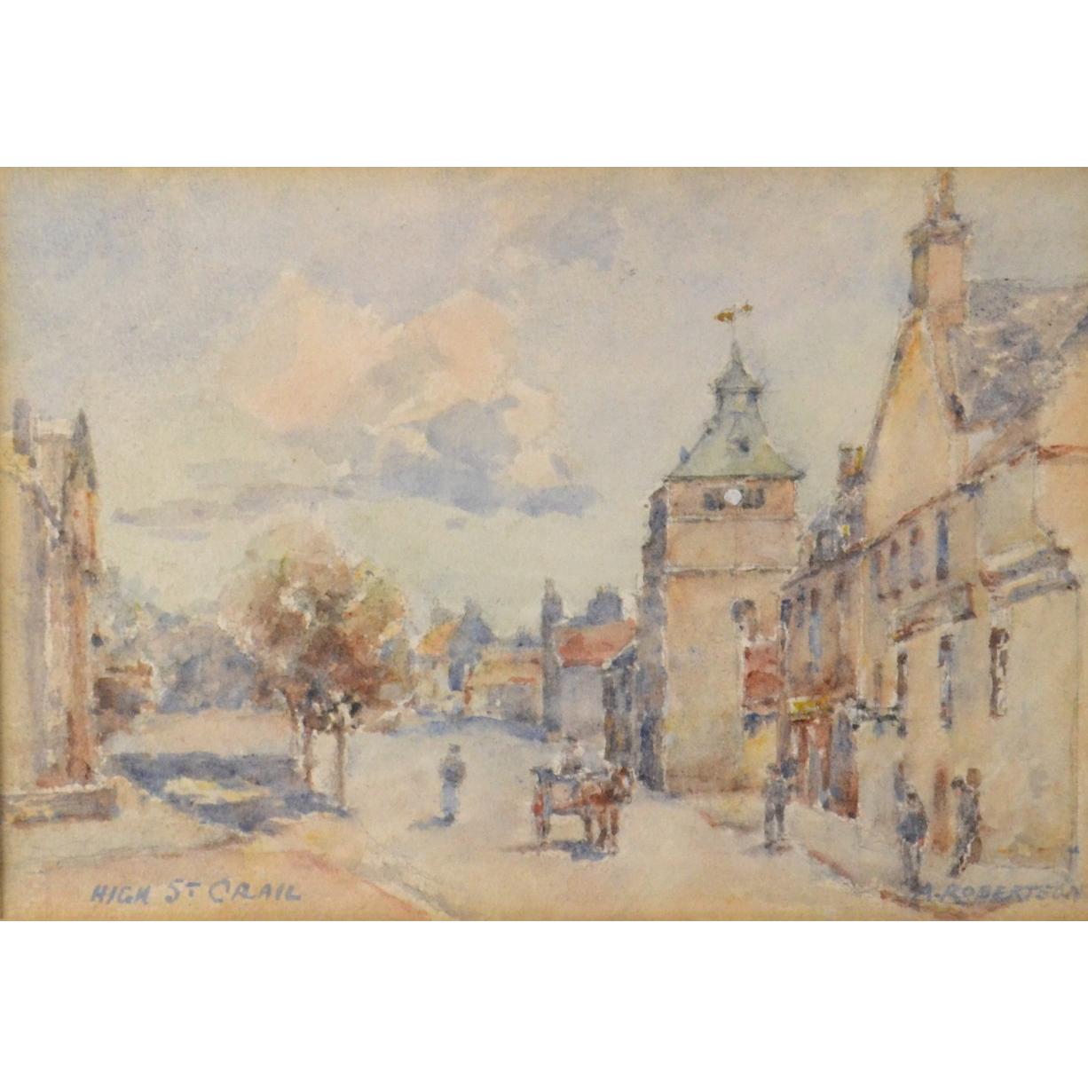 Vintage framed watercolour depicting Crail High St by A Robertson, dimensions are the actual painting, not frame size L: 24cm approx W: 17cm approx Approx 1 pieces