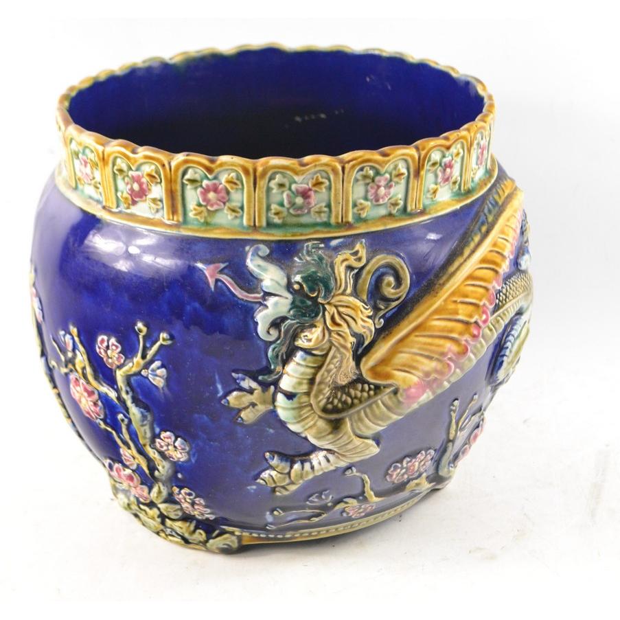Large plant bowl from a jardiniere, blue glazed