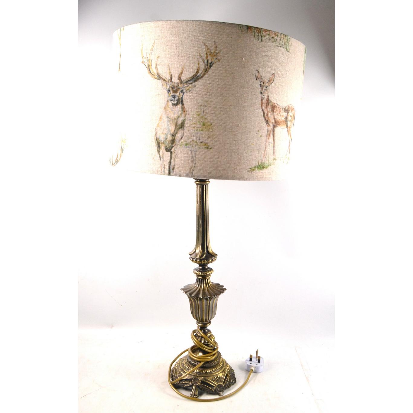 Tall lamp with Stag design on the shade with a smaller table lamp alsoApprox 2 pieces