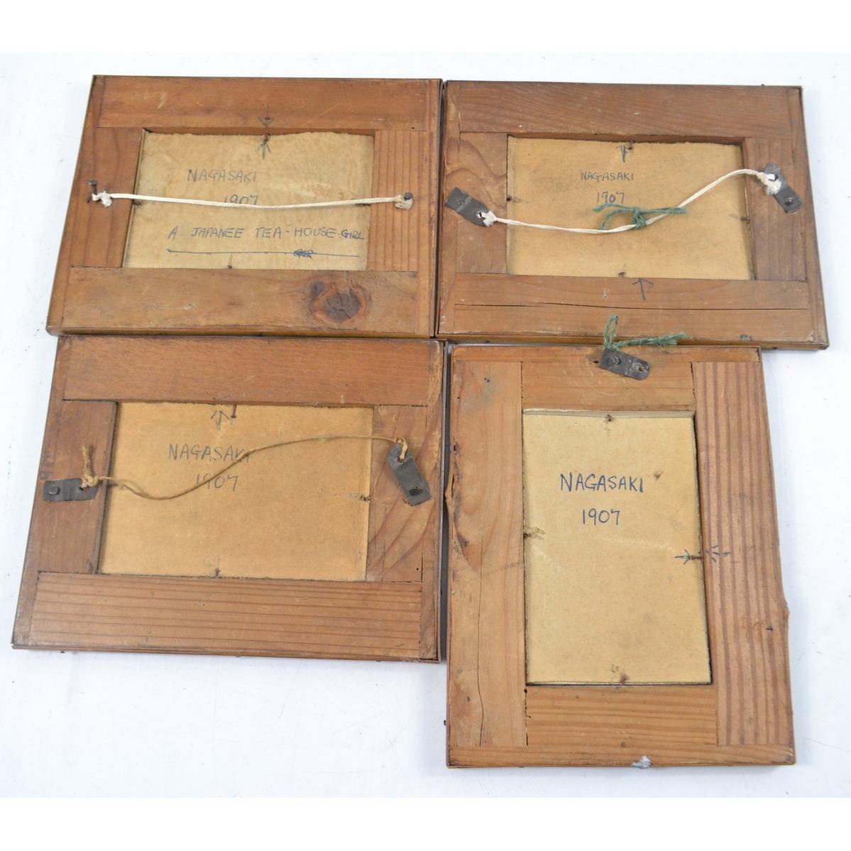 RARE TO FIND 4 turn of the century traditional Japanese(NAGASAKI) bamboo frames with (1907)1900's photographs of young women in traditional dress - L: 21.5cm approx W: 17cm approx Approx 4 pieces