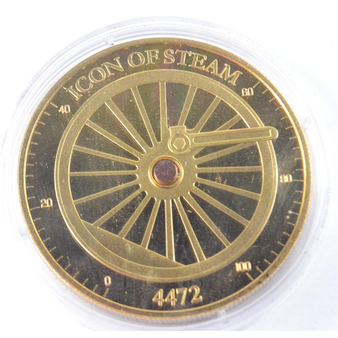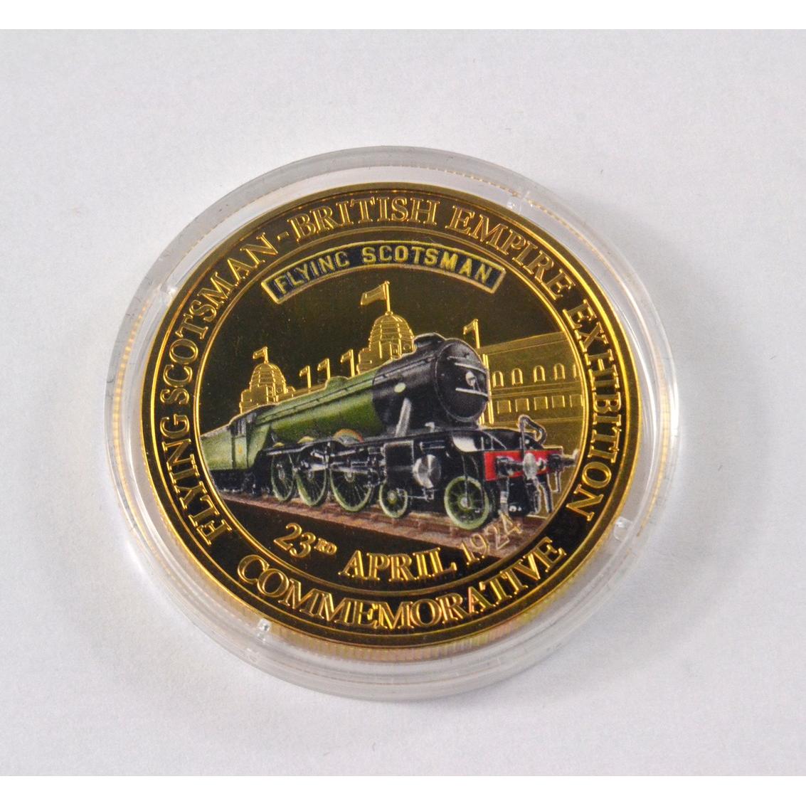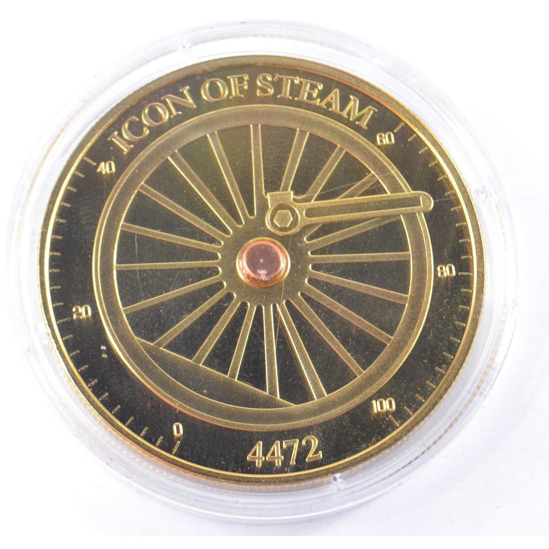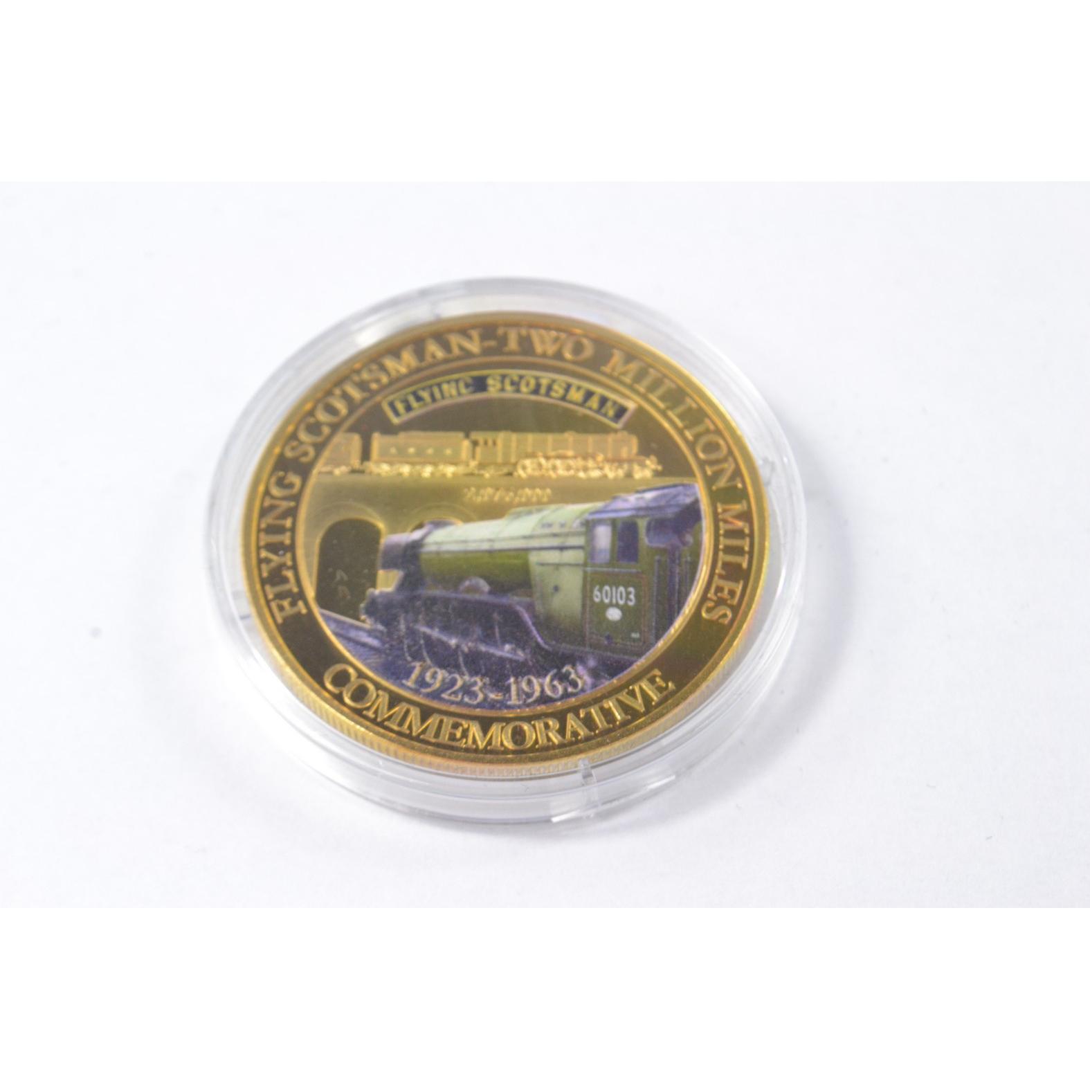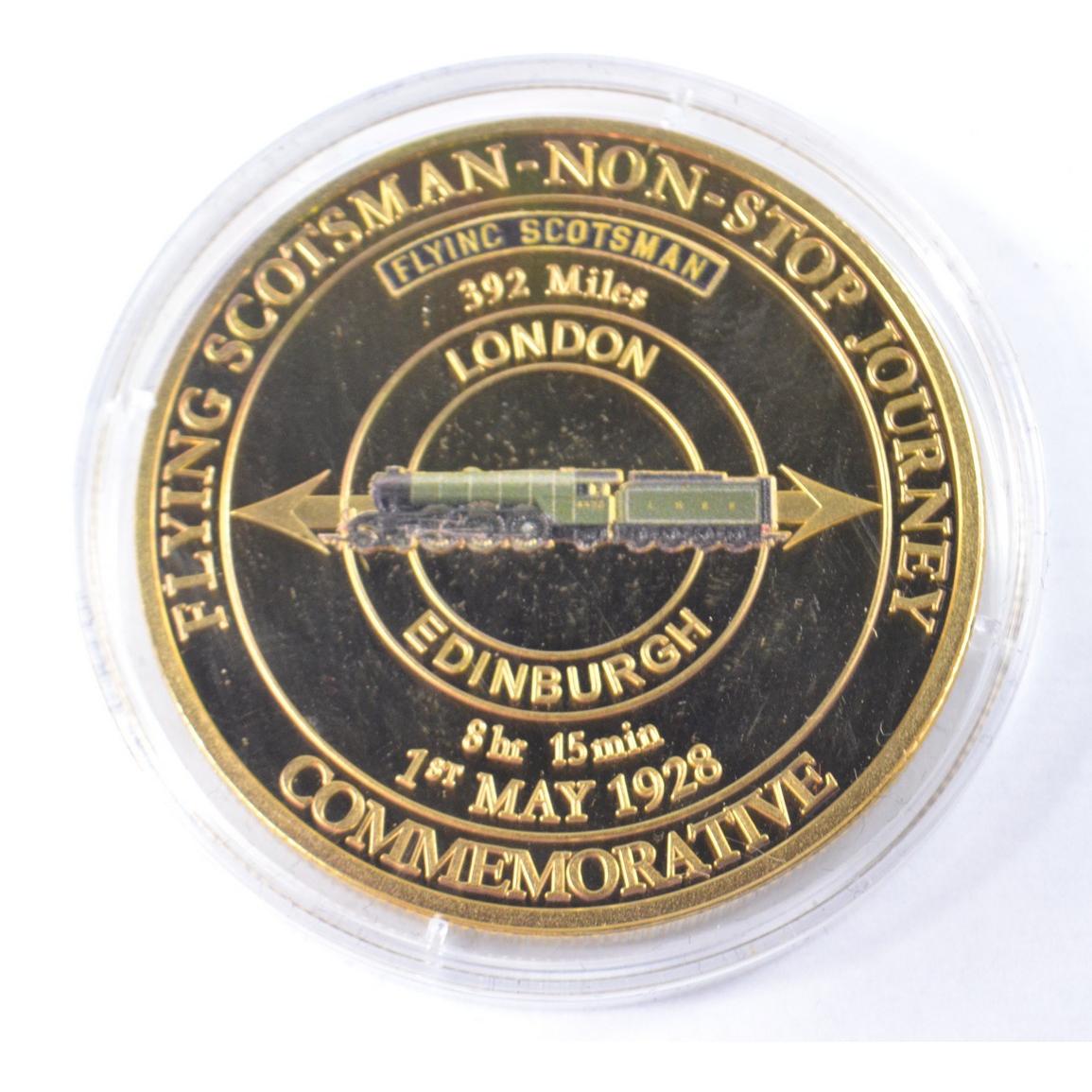 Full set of 8 gold plated collectors coins displaying vintage steam trains to include The Flying Scotsman