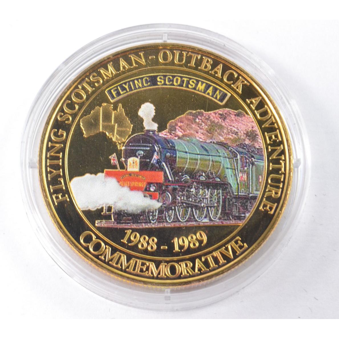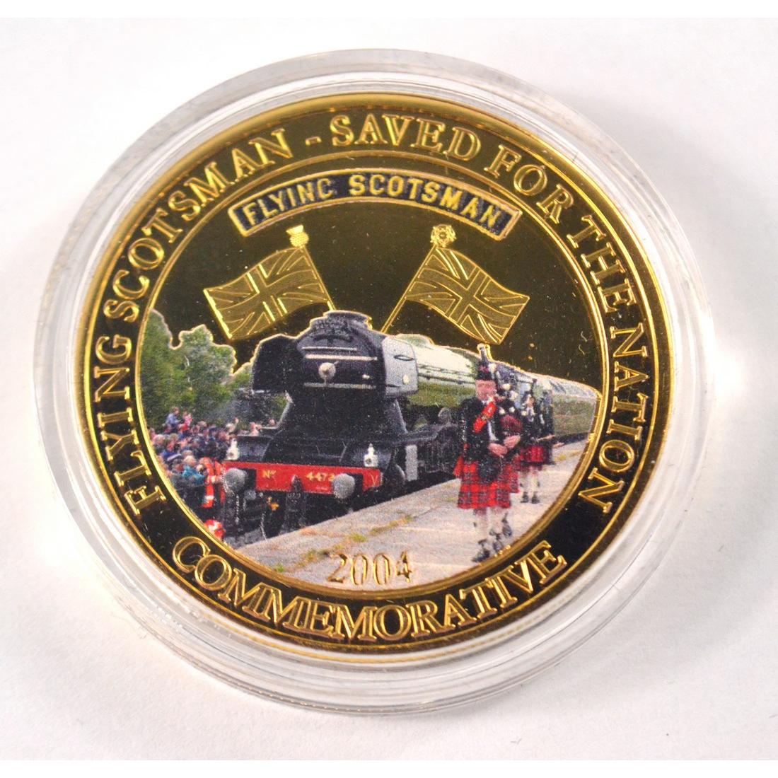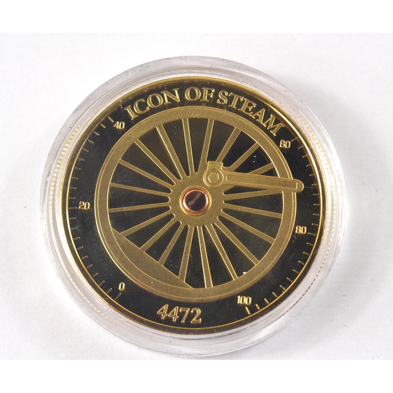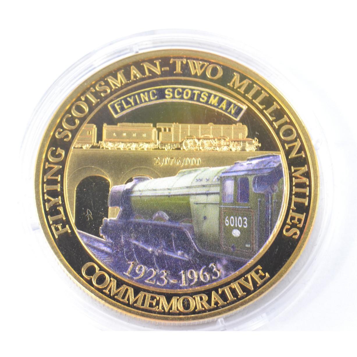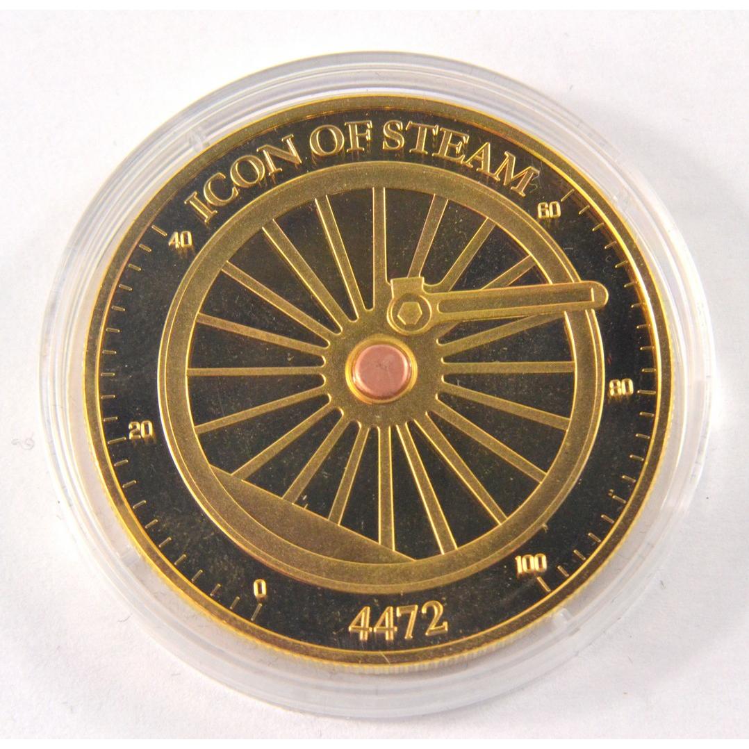 Full set of 8 gold plated collectors coins displaying vintage steam trains to include The Flying Scotsman