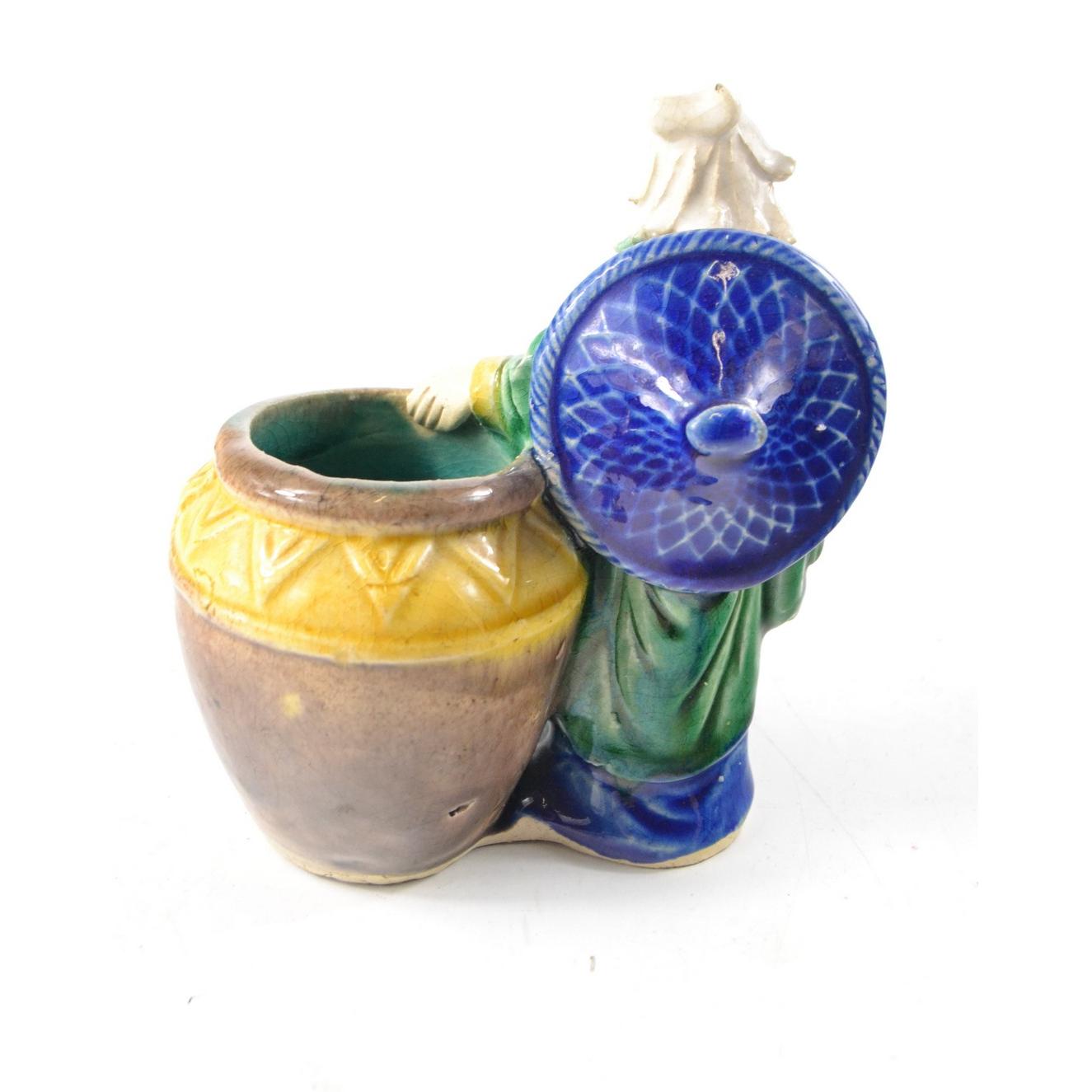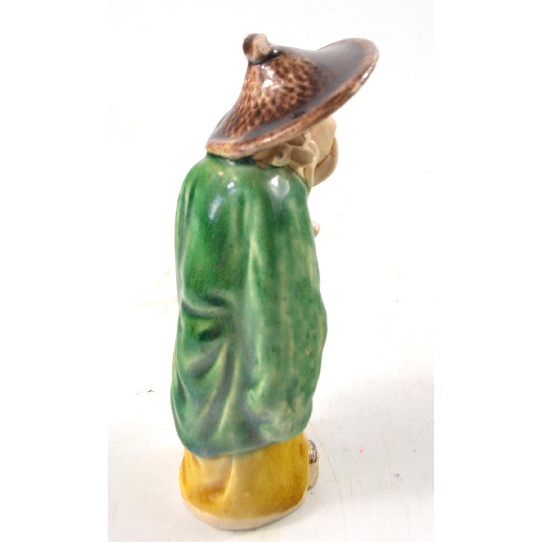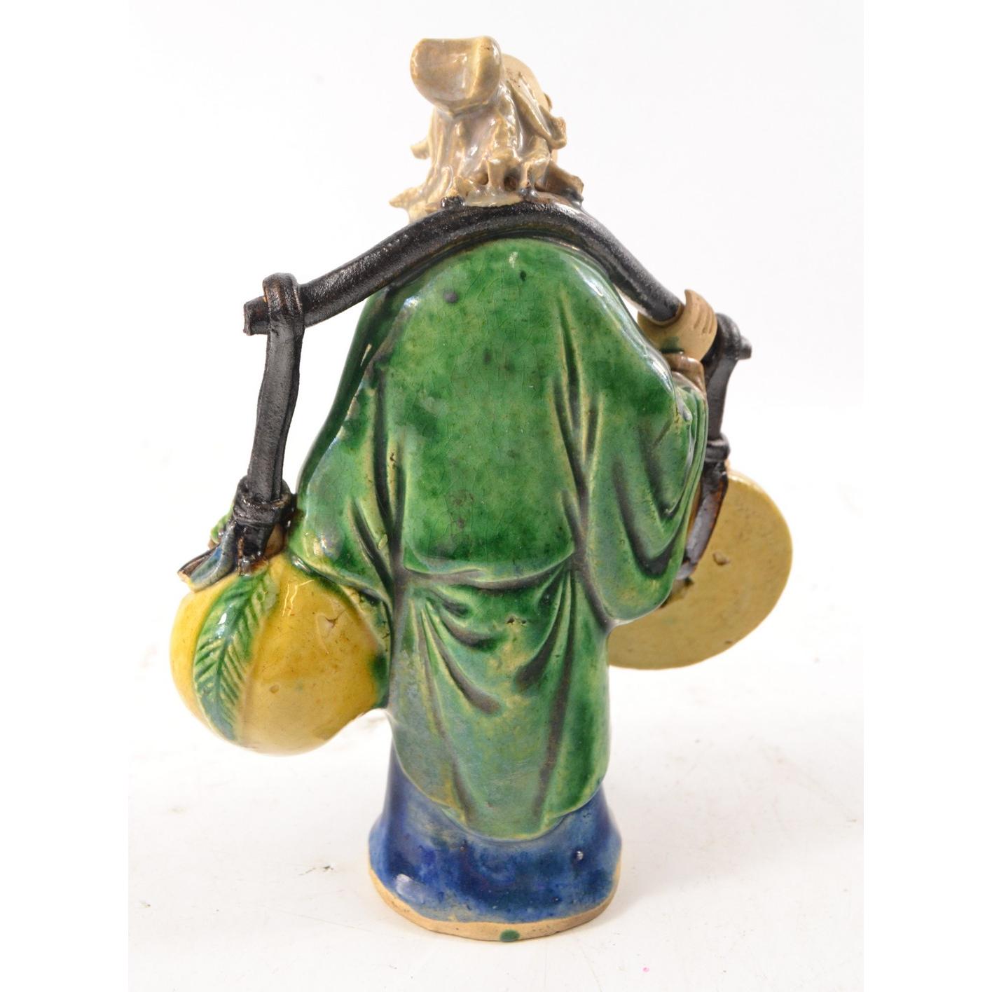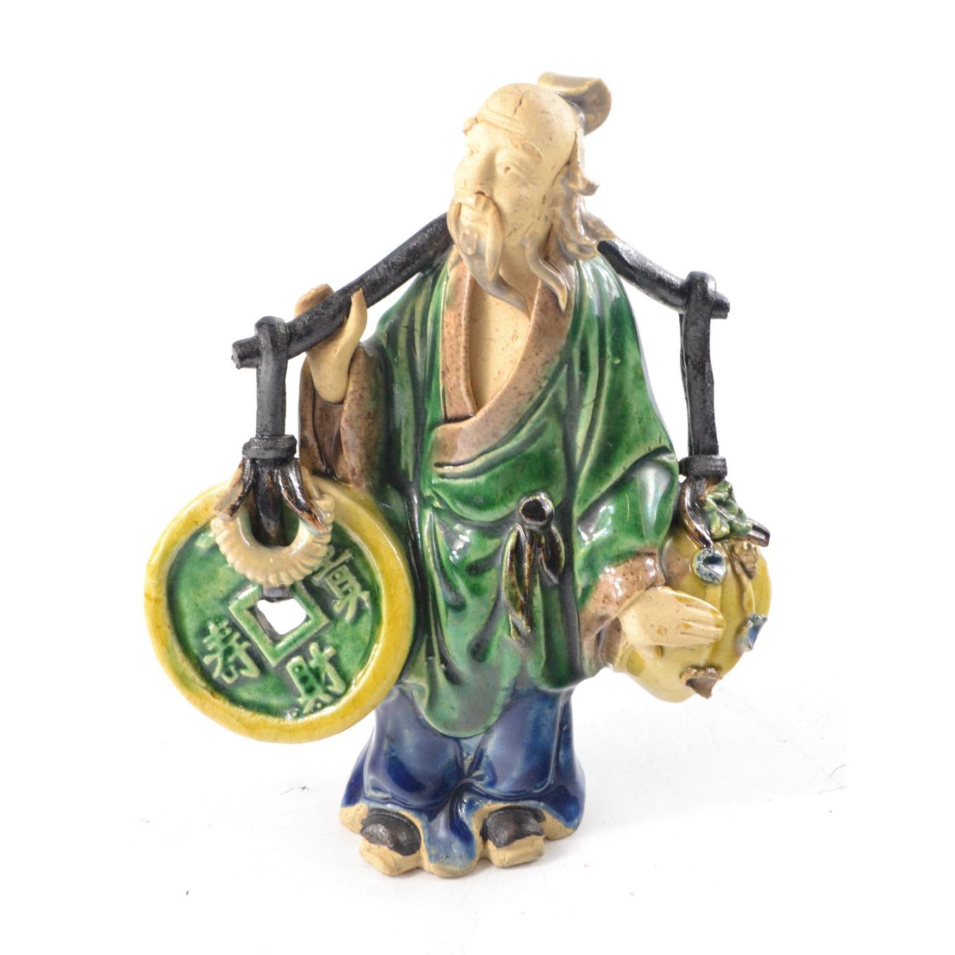 A collection of 4 glazed pottery Chinese men, in varying sizes, 16cm, 12cm 11cm and 9cm Heights, from largest to smallest.Approx 4 pieces