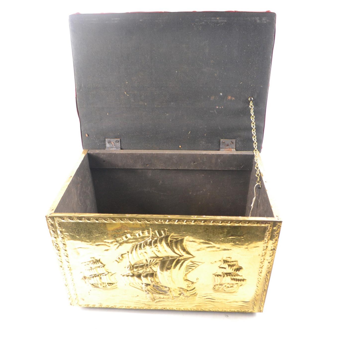 Brass repousse style sailing scene log box