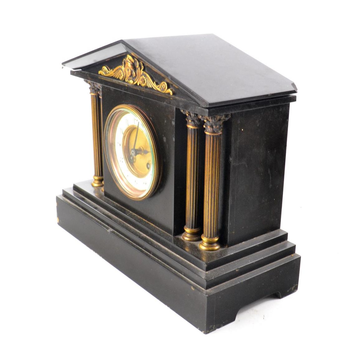 Slate column mantel clock