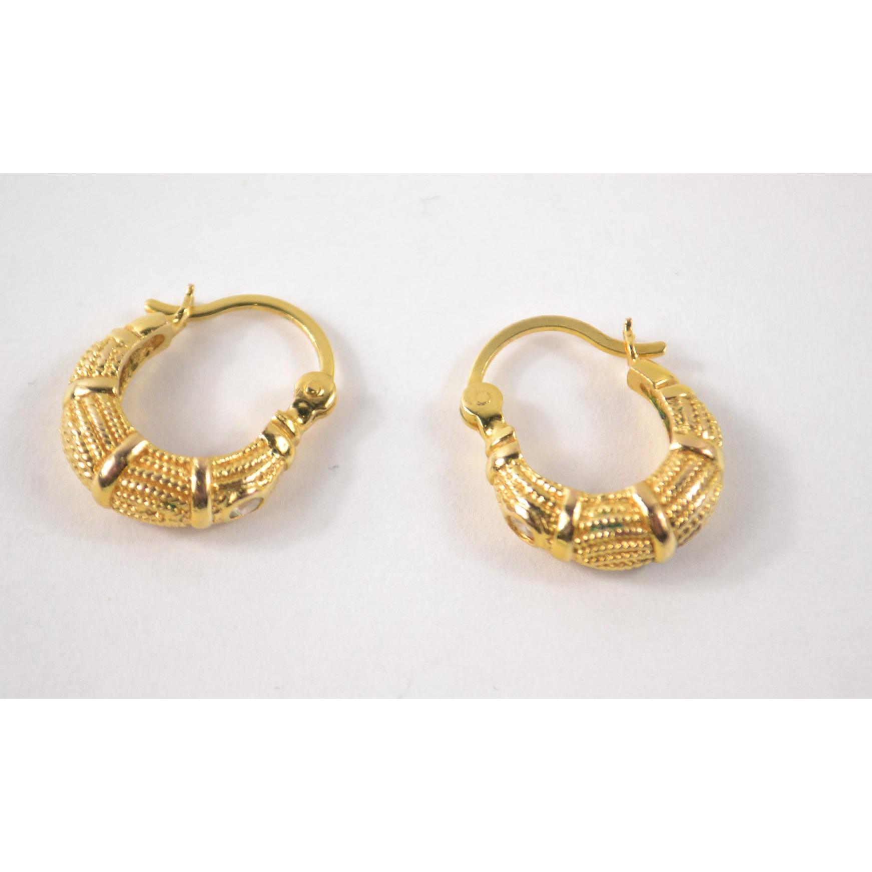 Pair of yellow metal half hoop earrings set with a small clear stoneGross weight approx 4.2g