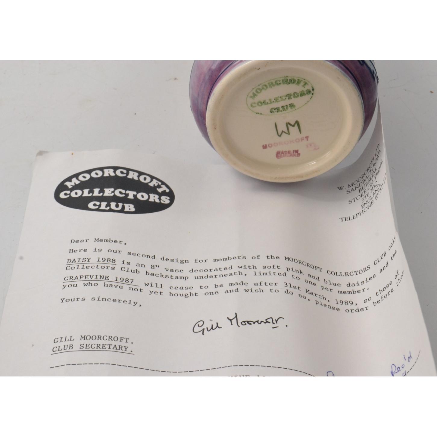 MOORCROFT collectors club vase 'Daisy 1988' decorated with soft pink and blue daisies. Second in the collectors club seriesH: 21cm approx