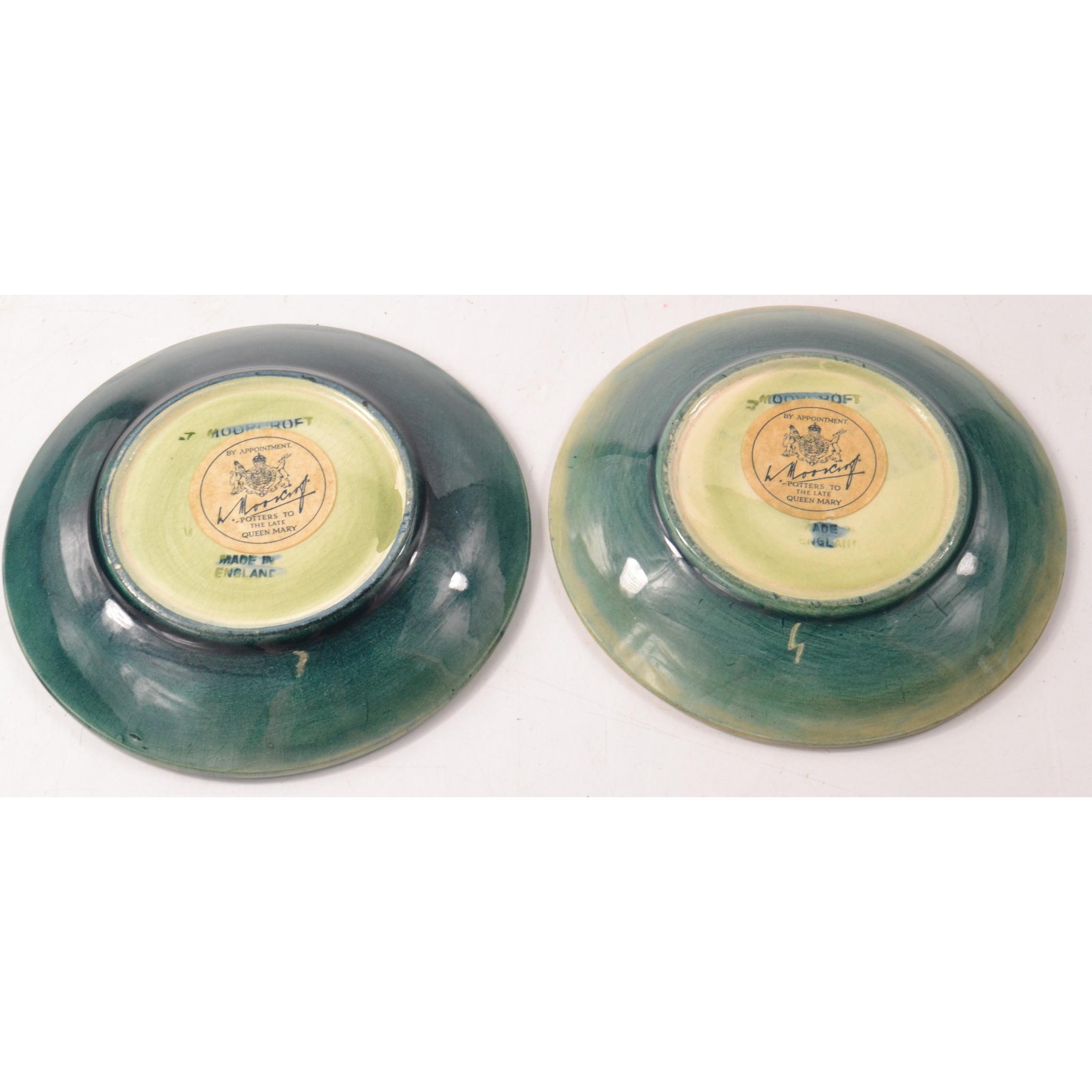 Two MOORCROFT pin dishes in sea green and sea blue colourways. With W.Moorcroft 'Potters to the late Queen Mary' backstampW: 11.5cm approx