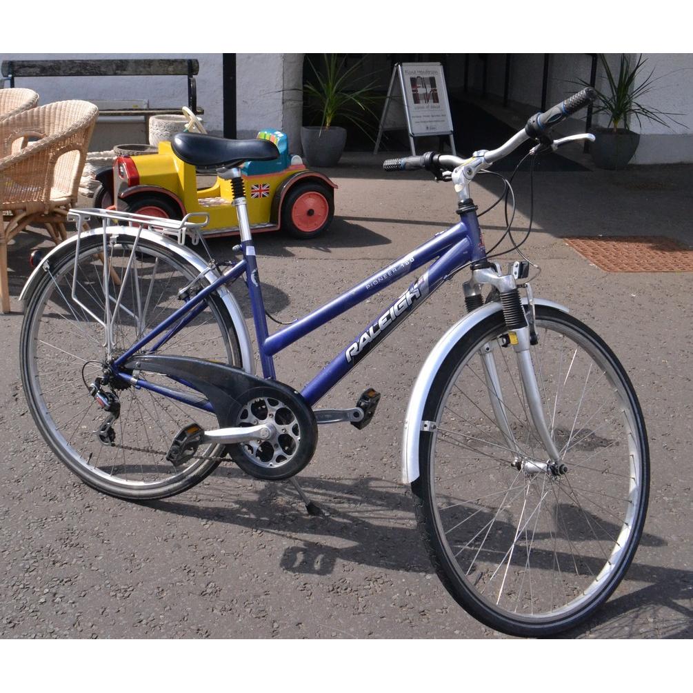 RALEIGH blue painted Pioneer 160 road bike with saddle bag mount, SHIMANO gears and 27" wheels