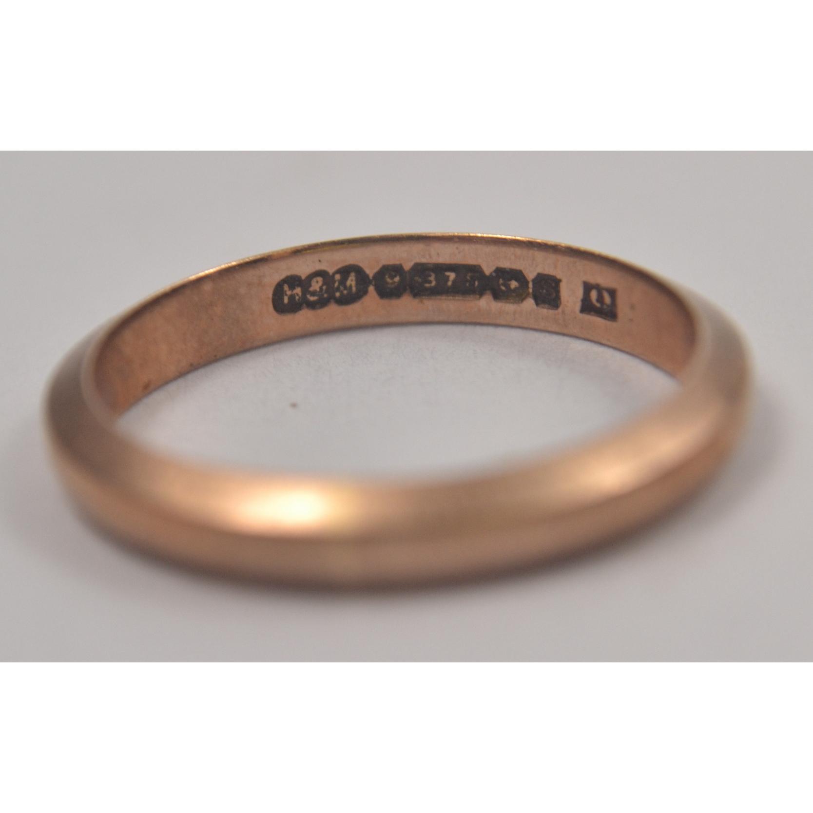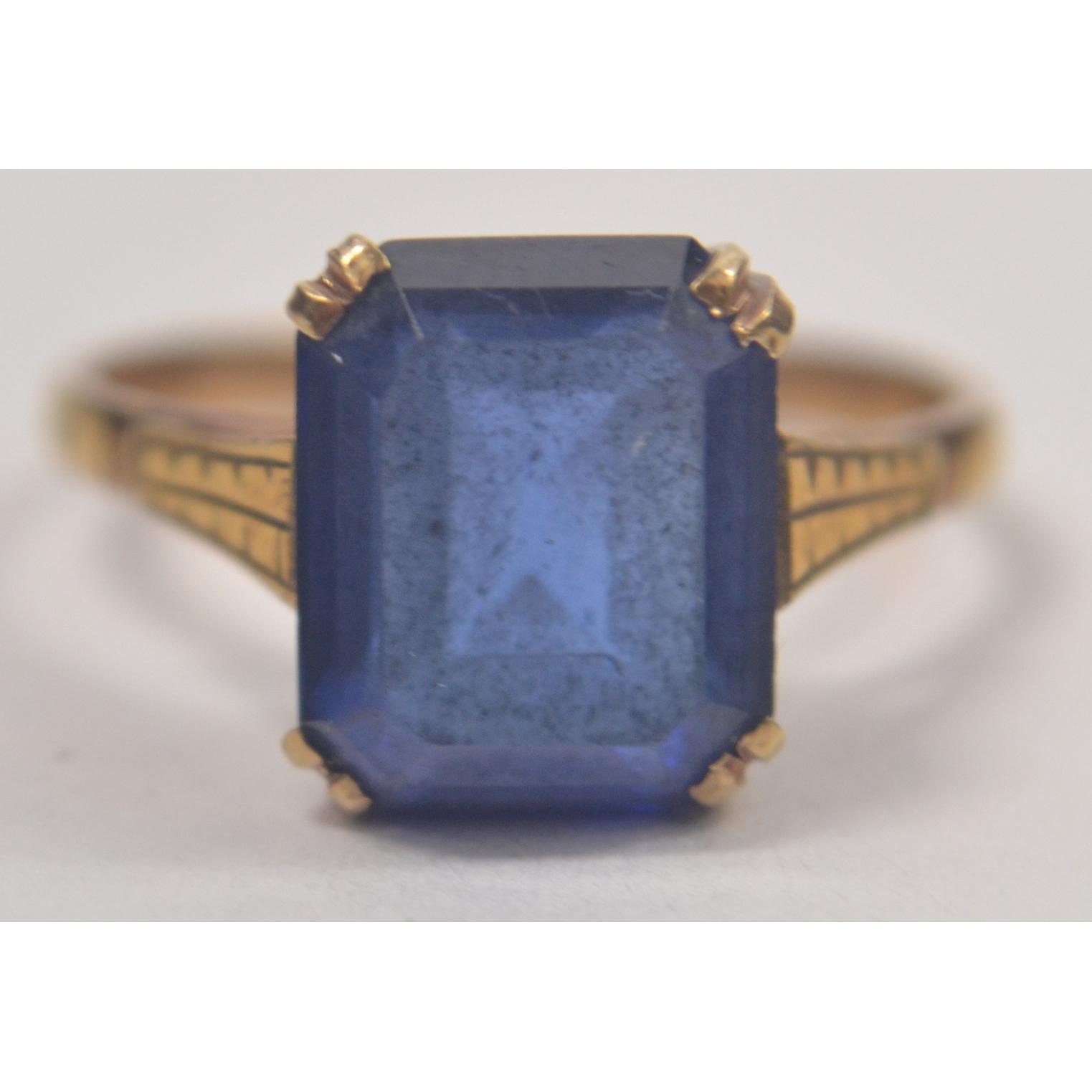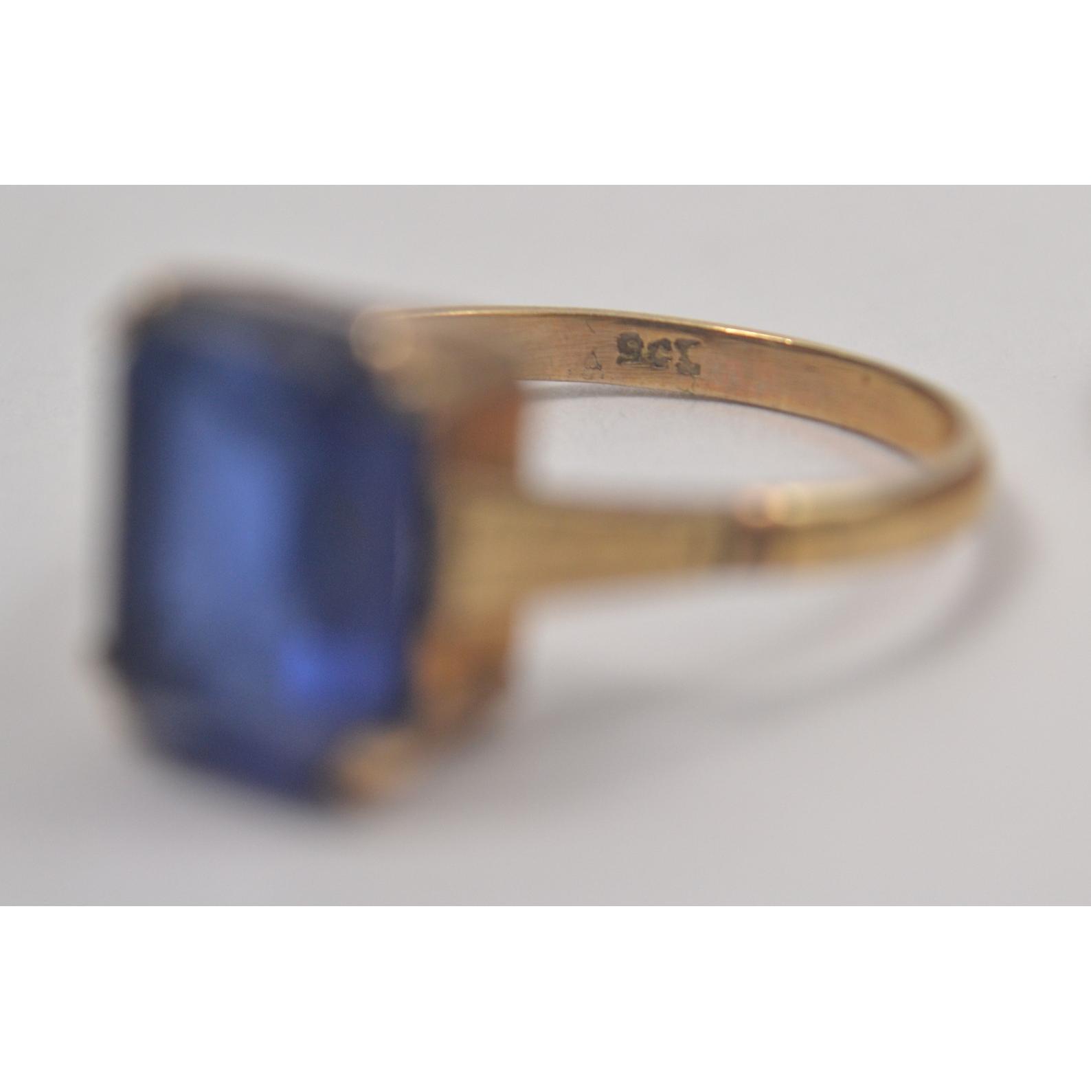 9ct stamped ladies dress ring with blue setting ring size O/P gross weight 2.90g and a 9k Birmingham stamped gold wedding band size N weight 2.3g Approx 2 pieces