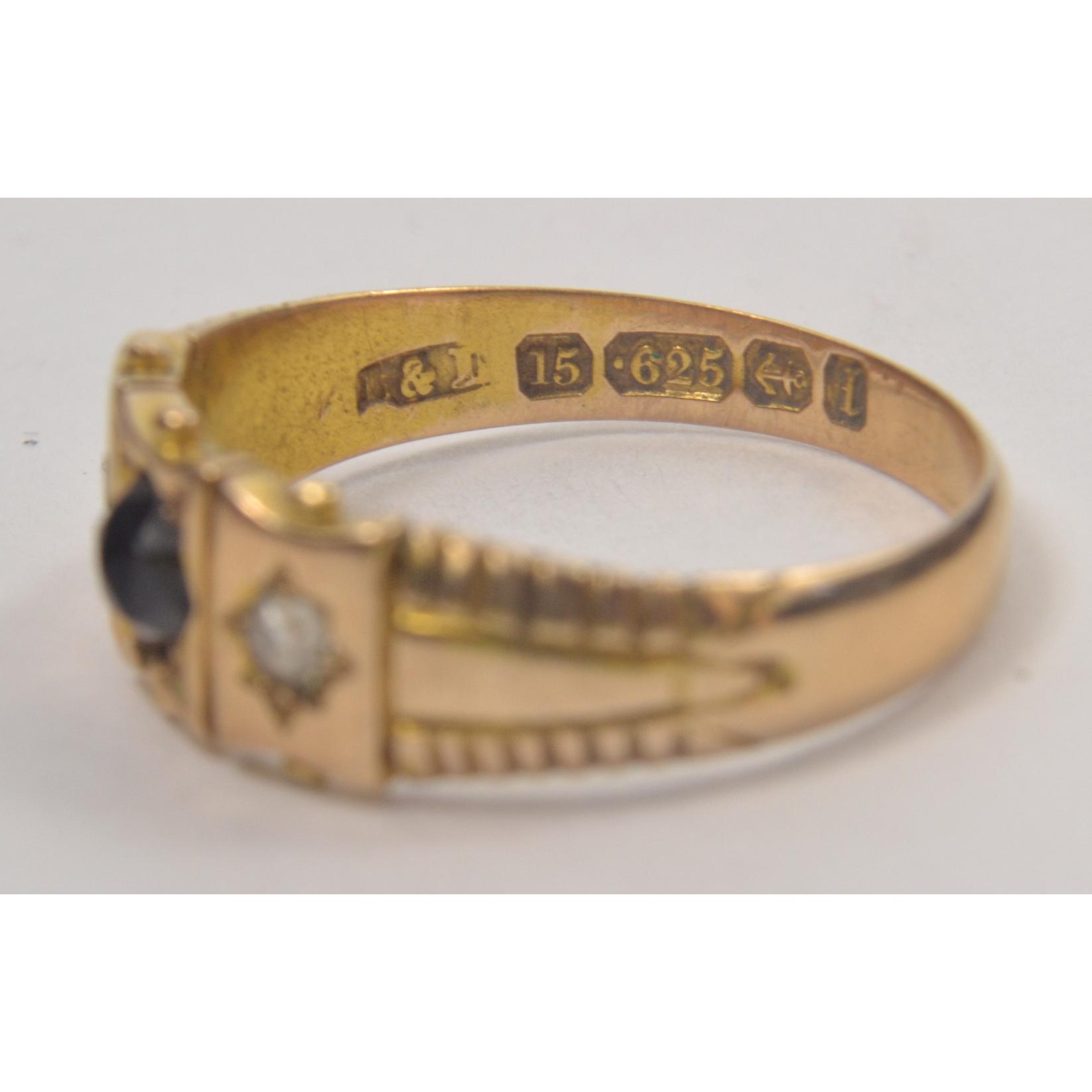 15ct stamped centre ruby and diamond ladies dress ring, size N/O, weight 3.1g grossGross weight approx 3.1g