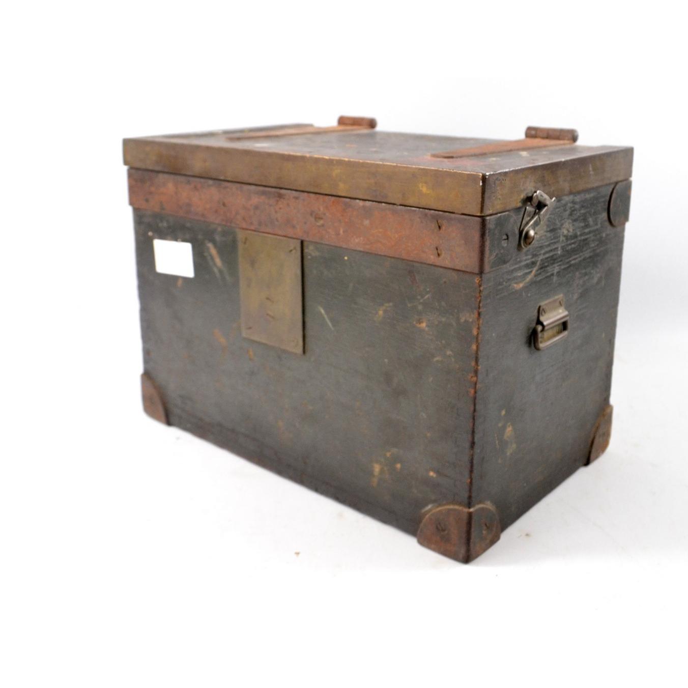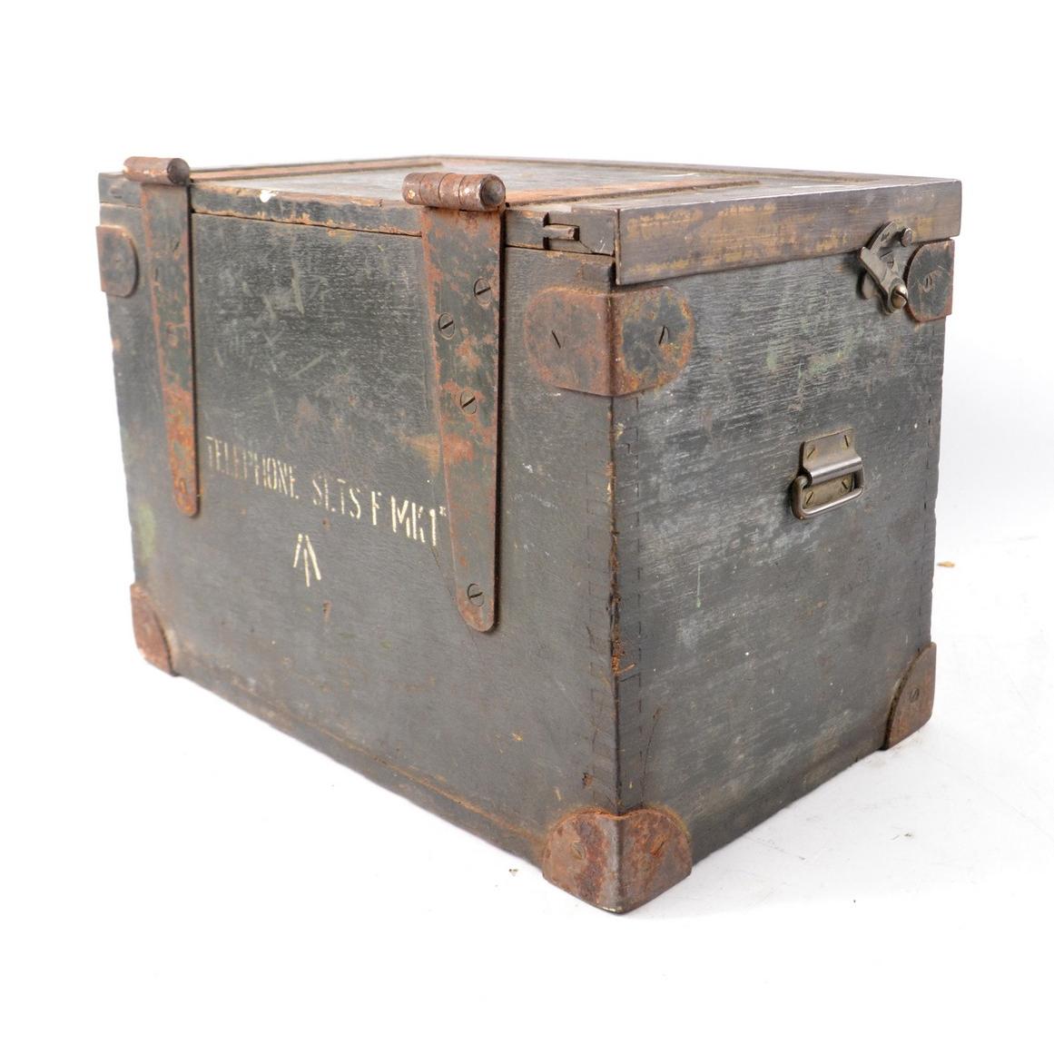 WW2 field telephone box 'sets F Mk1, with contents to include ww2 compass, a Coronation penknife etcApprox 5 pieces
