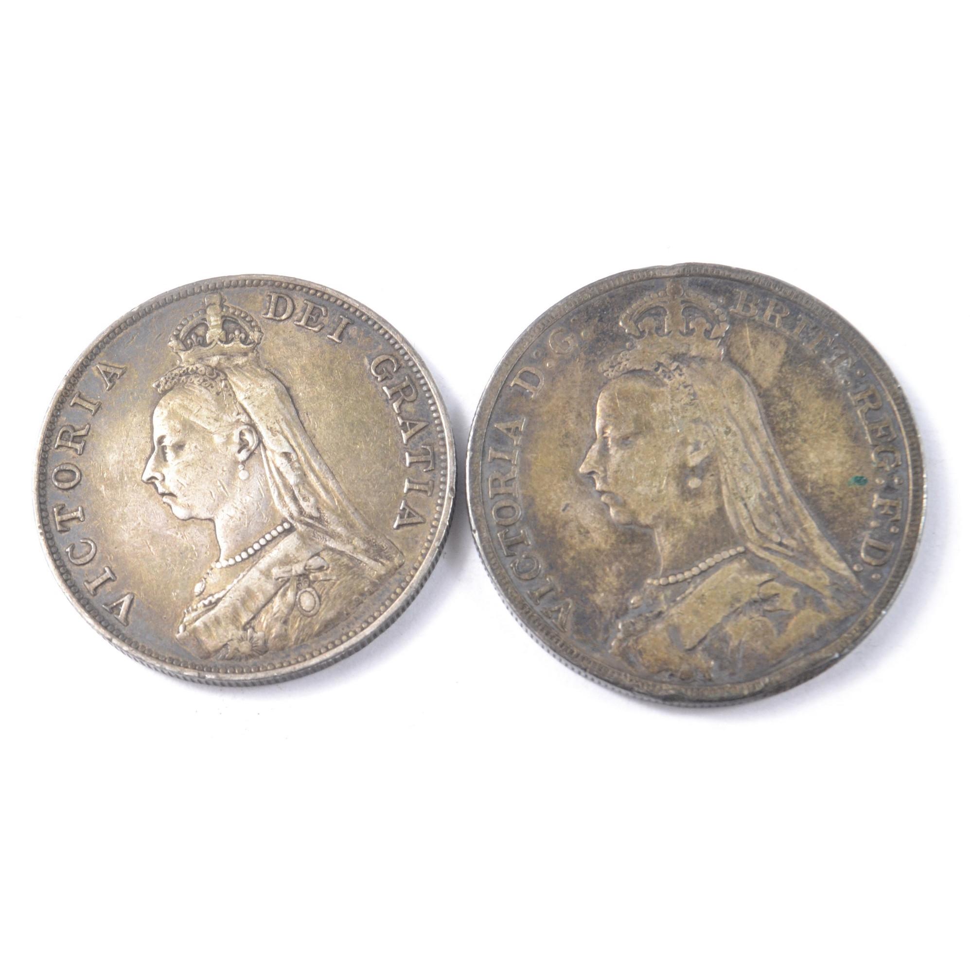 1892 Queen Victoria silver Crown and an 1890 Queen Victoria Silver Double Florin Coin (4 Four Shillings) Jubilee Head Approx 2 pieces