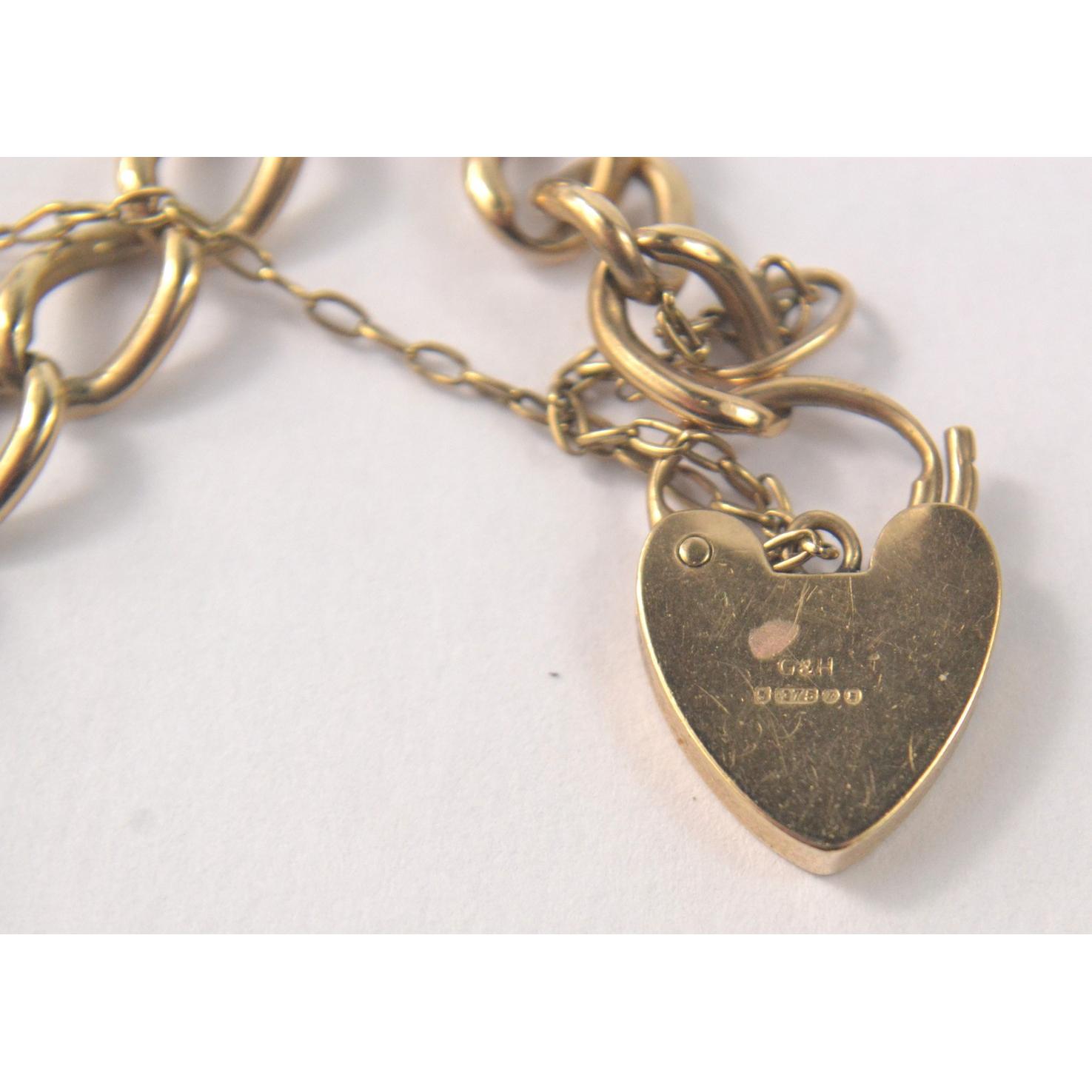 A 375 stamped gold love heart shaped locket with safety chain bracelet, gross weight 12.36 approx Gross weight approx 12.36