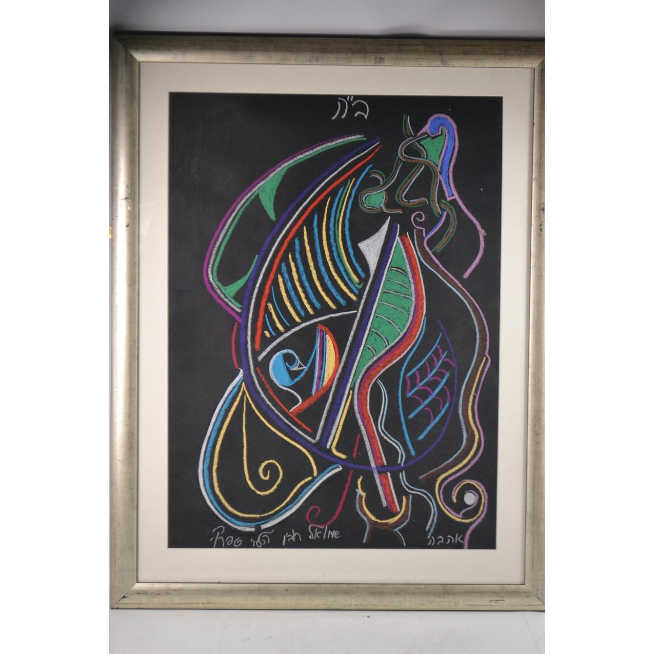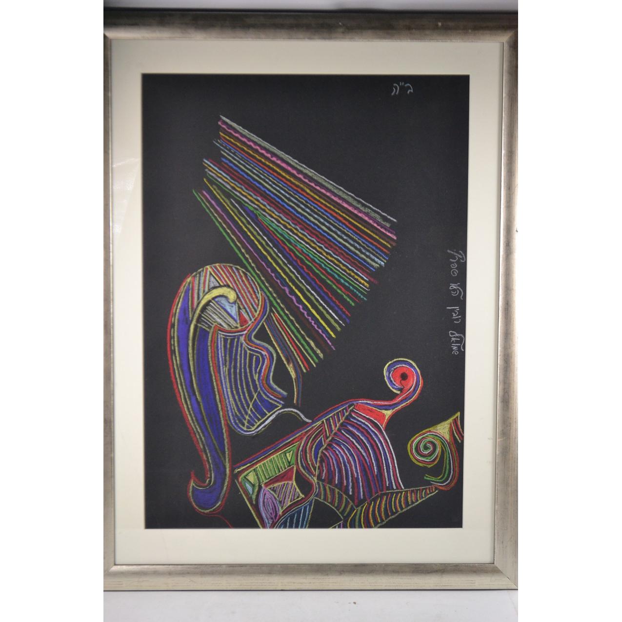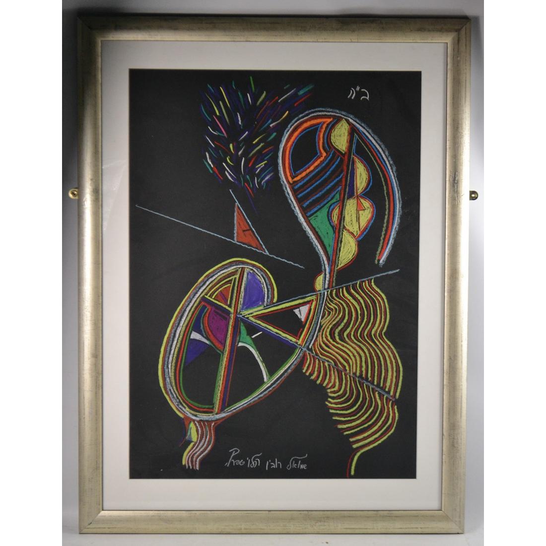 UNUSUAL! Set of 4 framed and glazed chalk on board abstract pictures by Samuel Robin Spark (son of famous writer Muriel Spark)