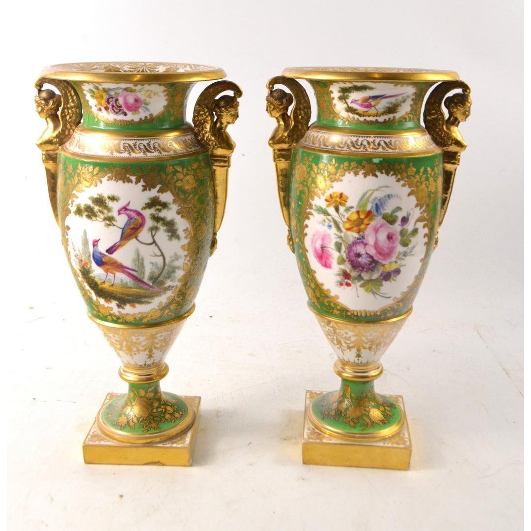 RARE 2 MINTON porcelaine style vases with panels depicting bird and flower scenes H: 28cm approx D: 12 cm approx Approx 2 pieces