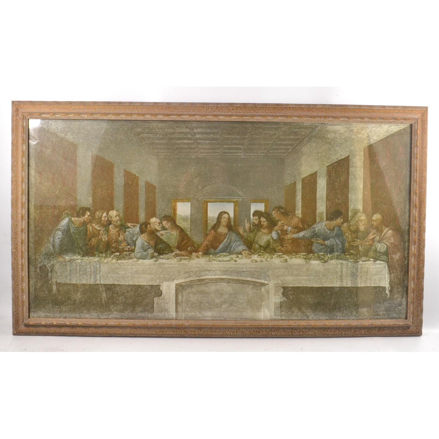 A colour print of 'The Last Supper' in an unusual frame