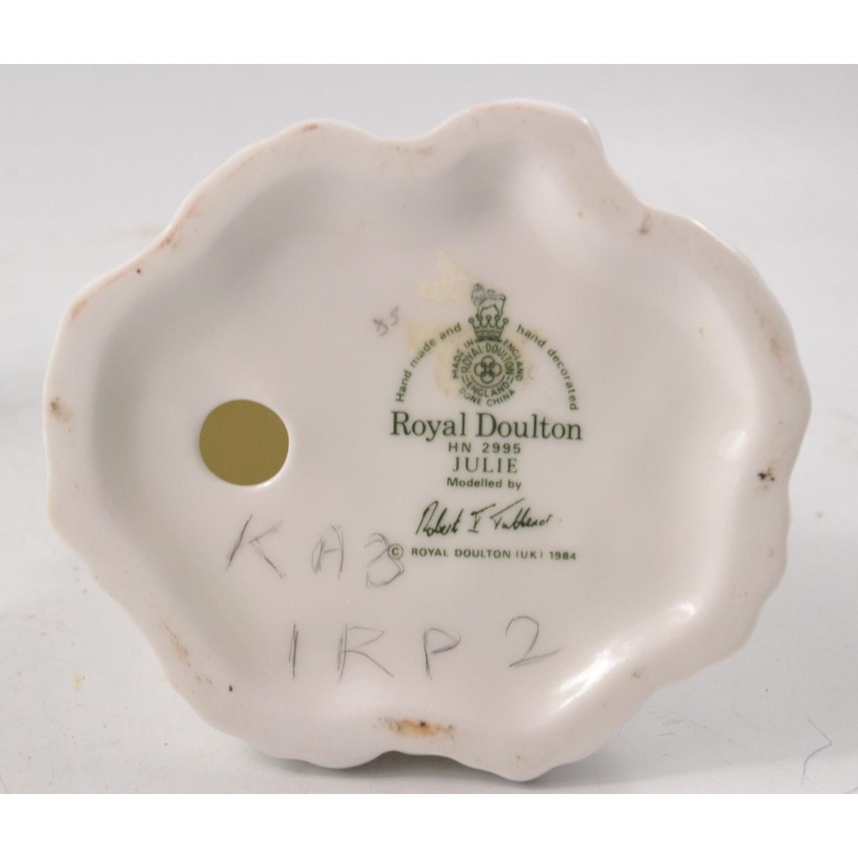 Three Royal Doulton figures. To include HN3036 'Kerry', HN2995 'Julie' and HN3043 'Lynsey'