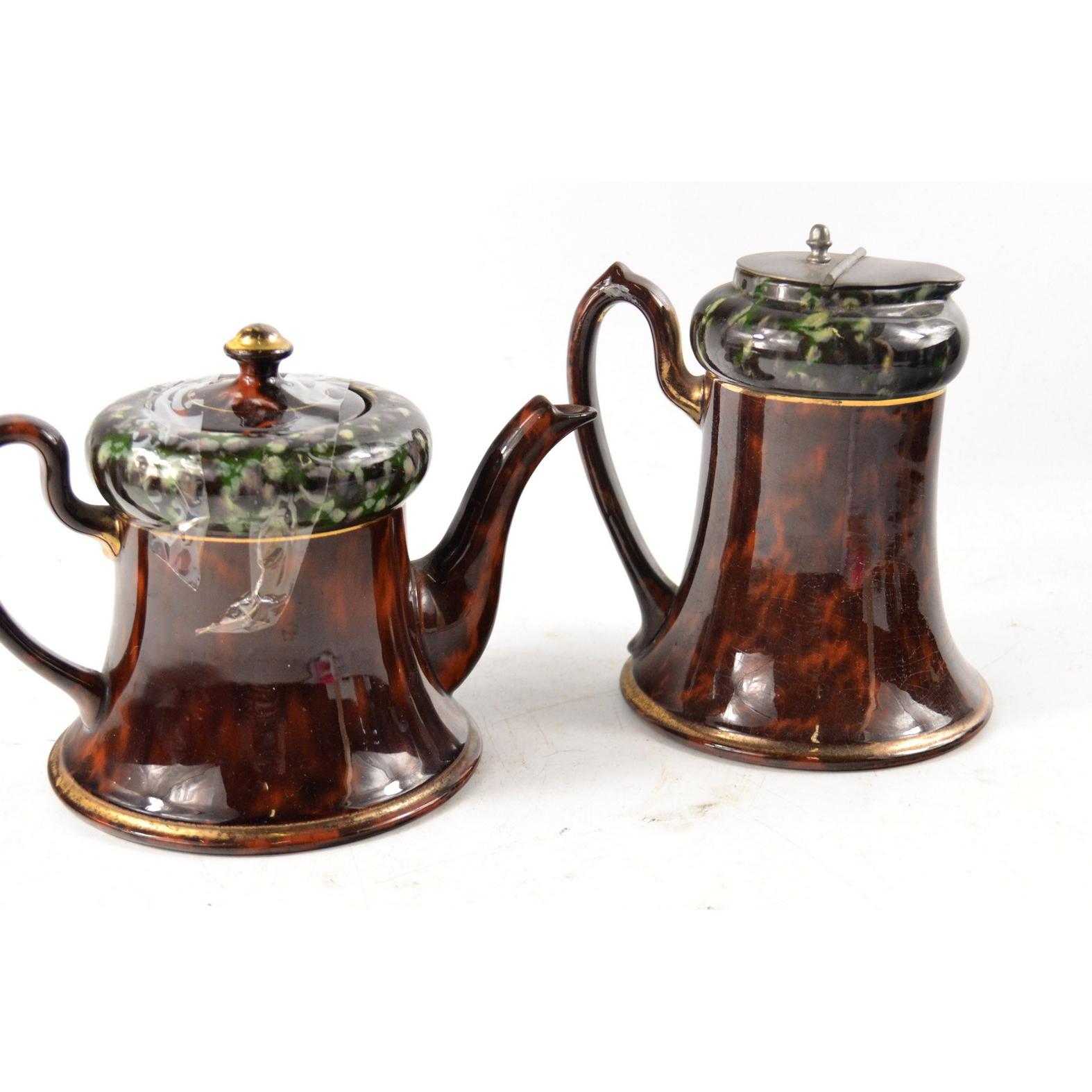 ANTIQUE Two brown treacle glaze style tea pot and hot water pot