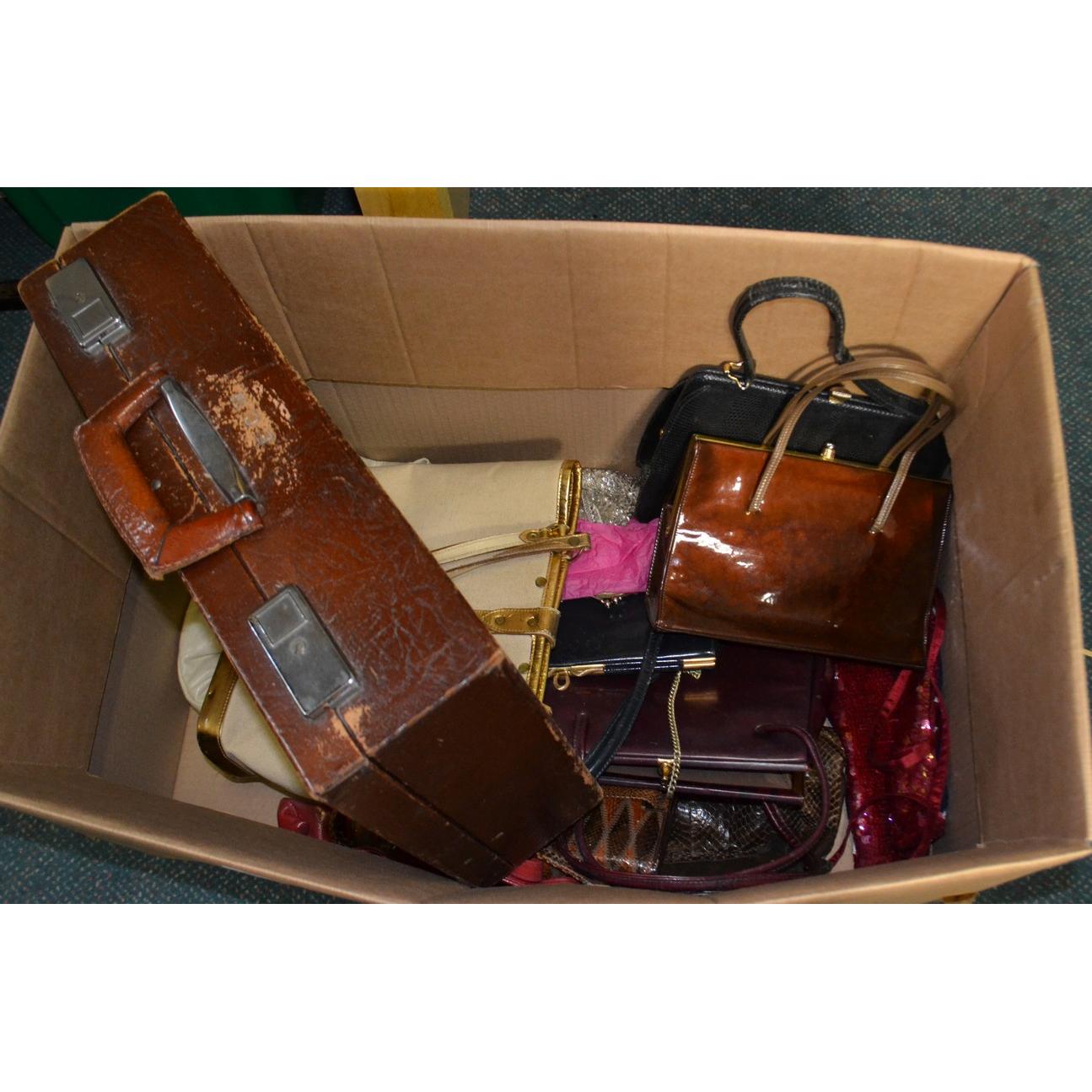 Box of handbags and briefcase etc