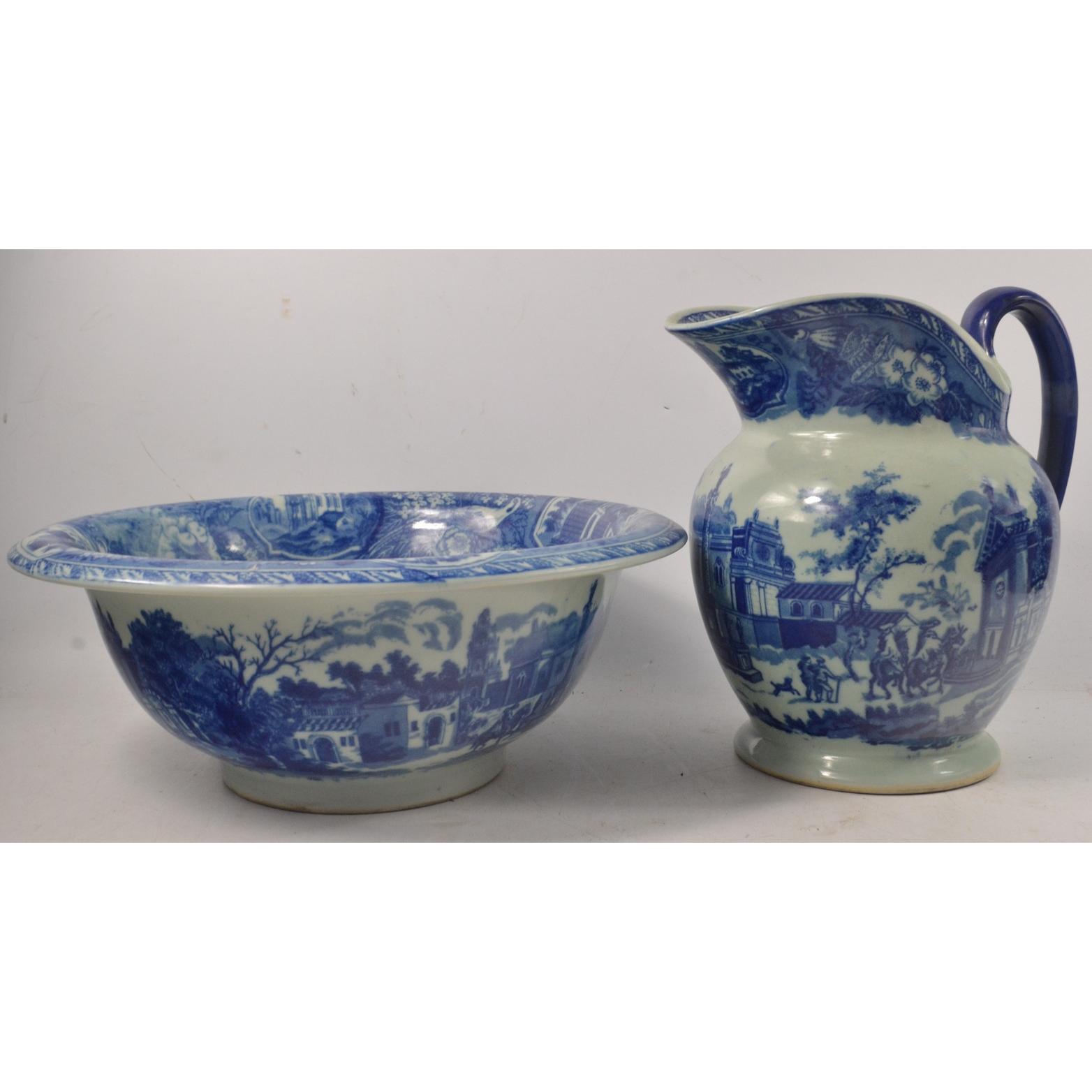 Vintage blue and white jug and ewer