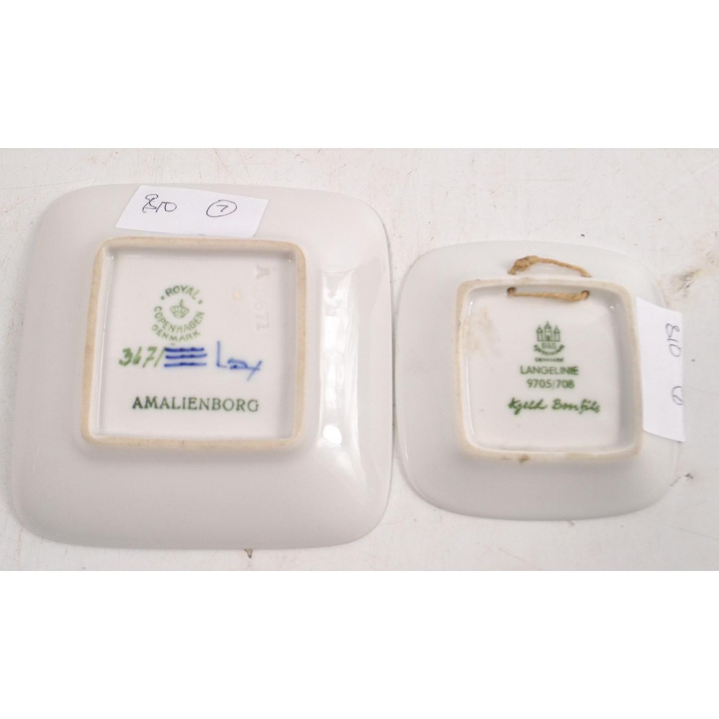 ROYAL COPENHAGEN AMALIENBORG pin dish and a pin dish piece made in LANGELINE No 9705/708 W: ROYAL COPENHAGEN: 10cm square approx H: LANGELINE: 8cm square approx
