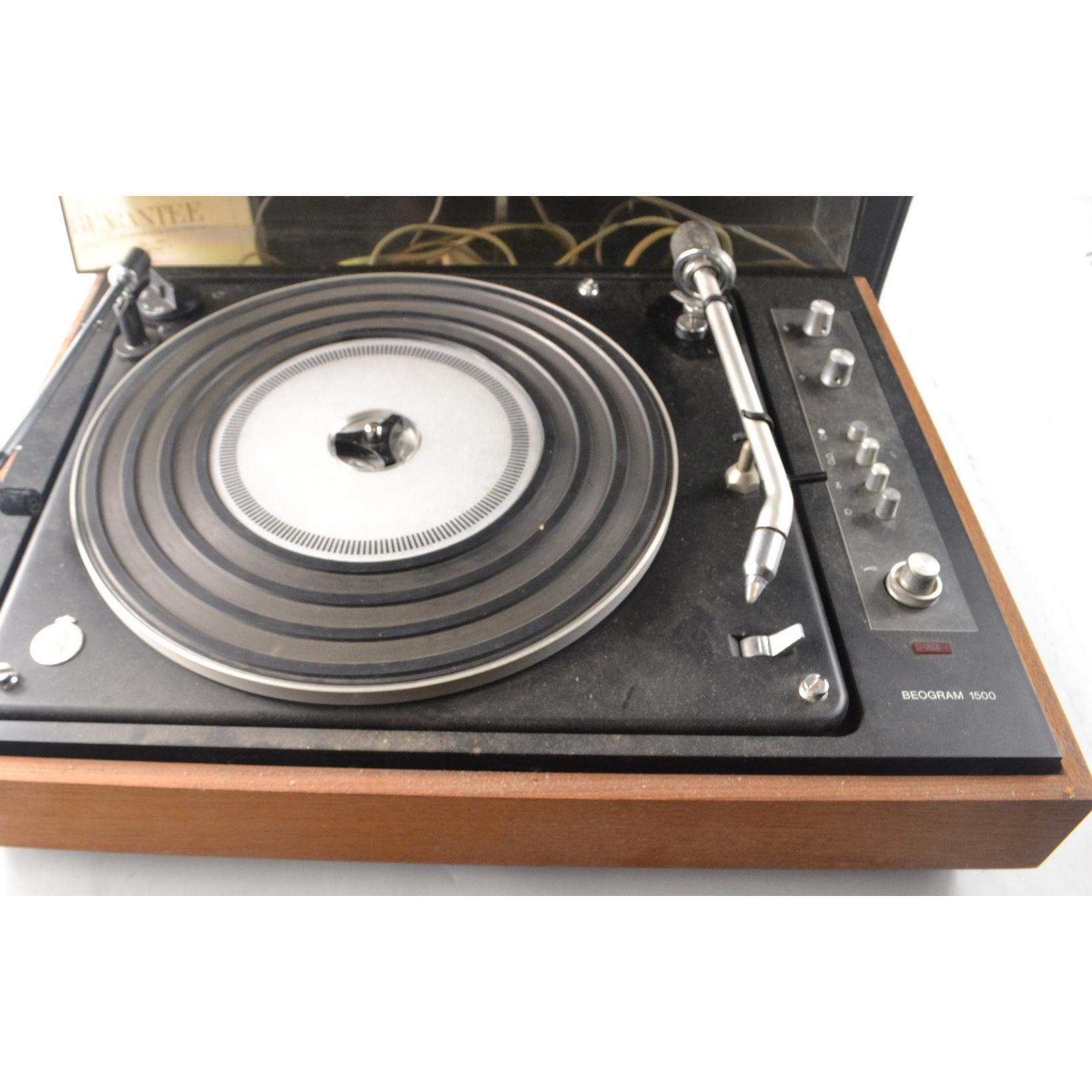 BANG & OLUFSEN BEOGRAM 1500 1974 turntable in working condition with a pair of BEOVOX 20 watt type 6246 speakers with white casing and badges intact, with original guarantee and instruction manual