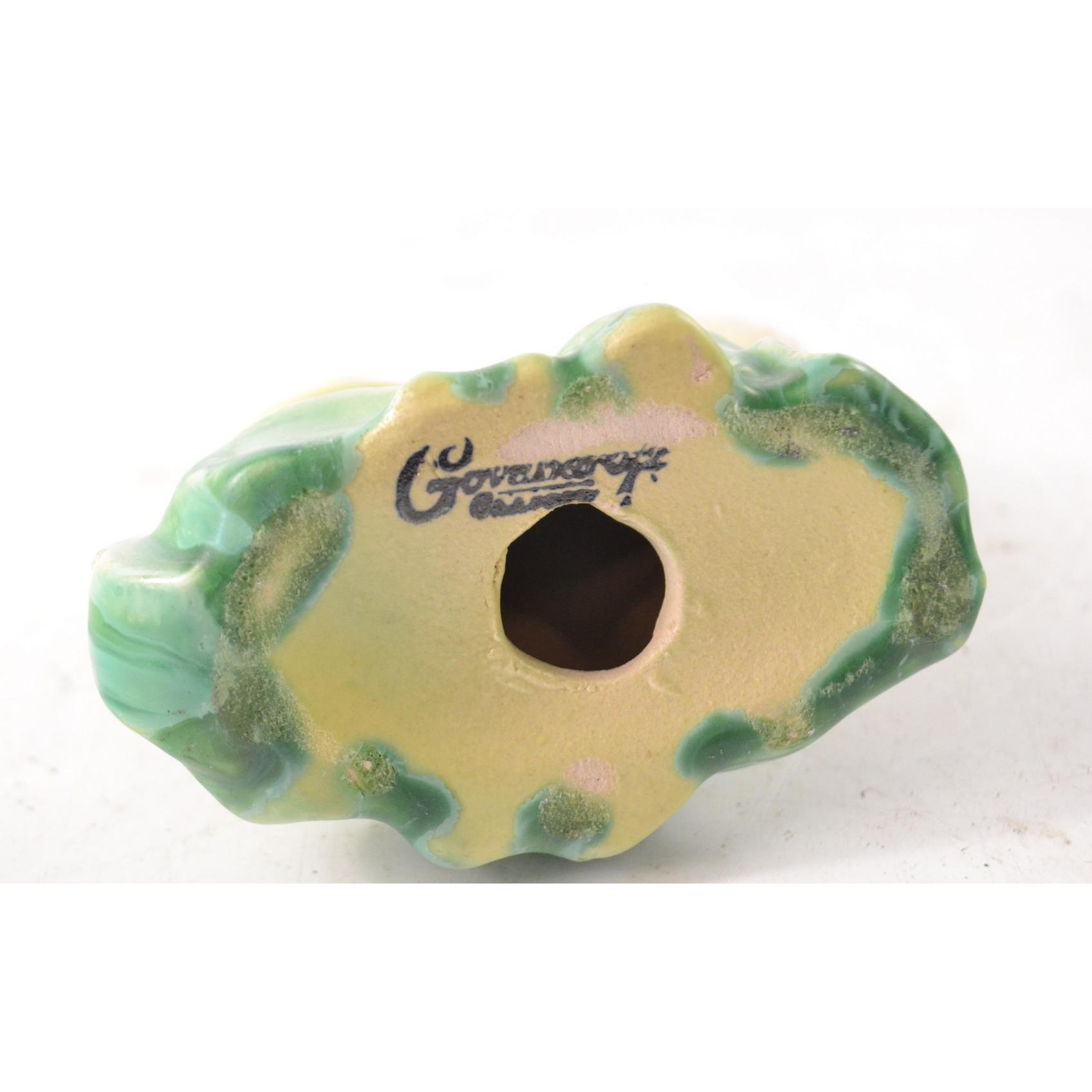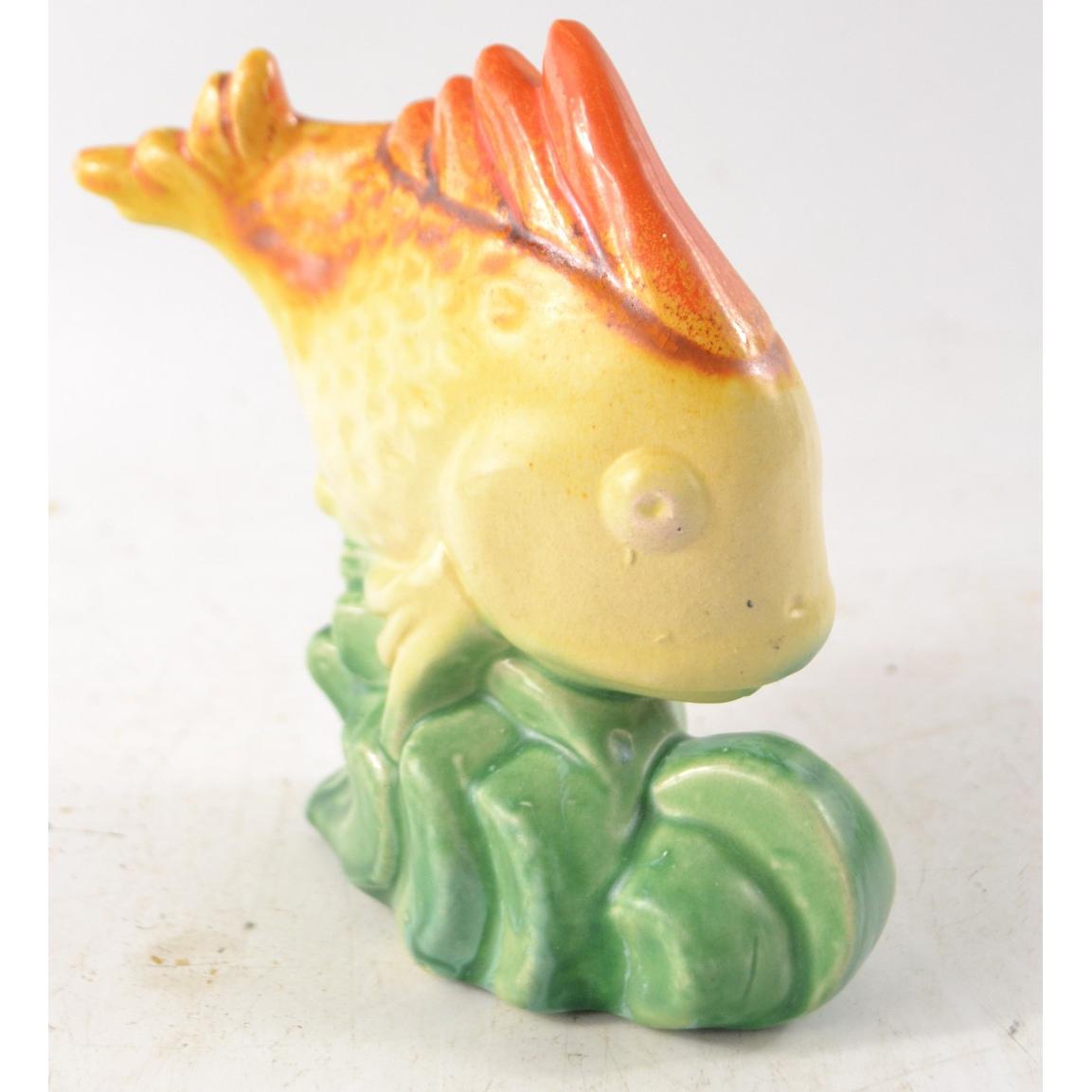 RARE PIECE ! GOVANCROFT pottery yellow fish on green base. Rare pieceW: 16 cm approx H: 14 cm approx