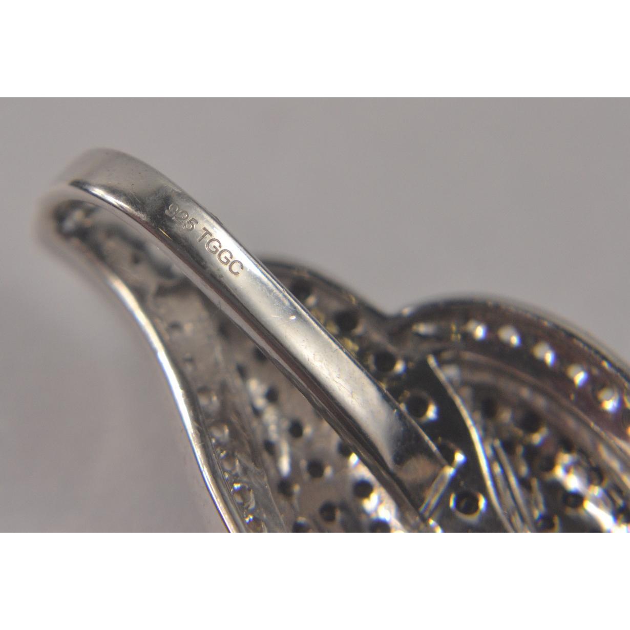 Silver 925 stamped pendant set with black Spinels and clear stones in leaf designL: 4cm approx W: 2cm approx