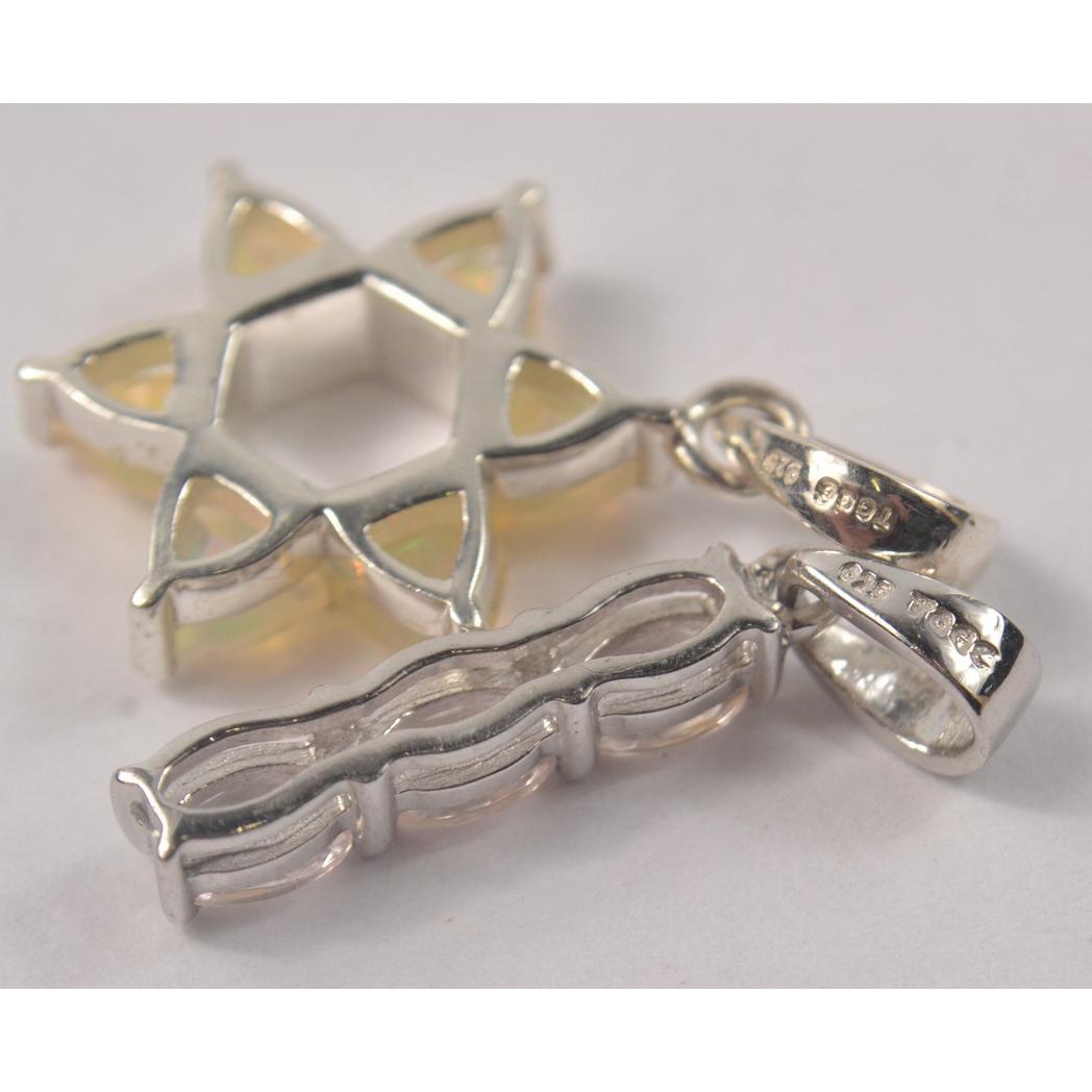 2 925 silver pendants 1 set with opals in a petal shape the other 3 very pale pink oval shaped stones in straight dropGross weight approx 4.8grmApprox 2 pieces