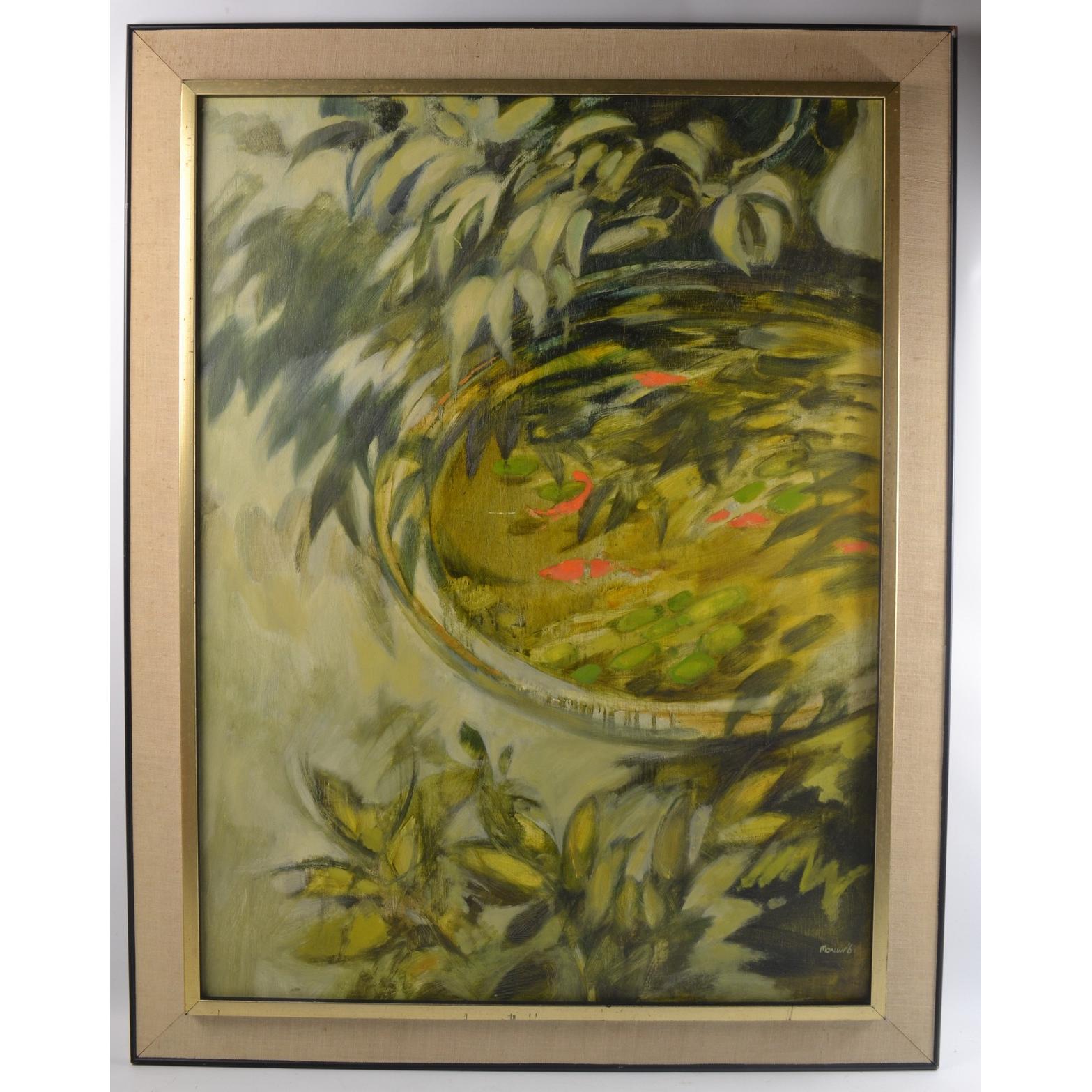 JACK MONCUR British, 'Small Fish Pond, oil on board,1969, Painting, 32in x 24in, Signed by artist.