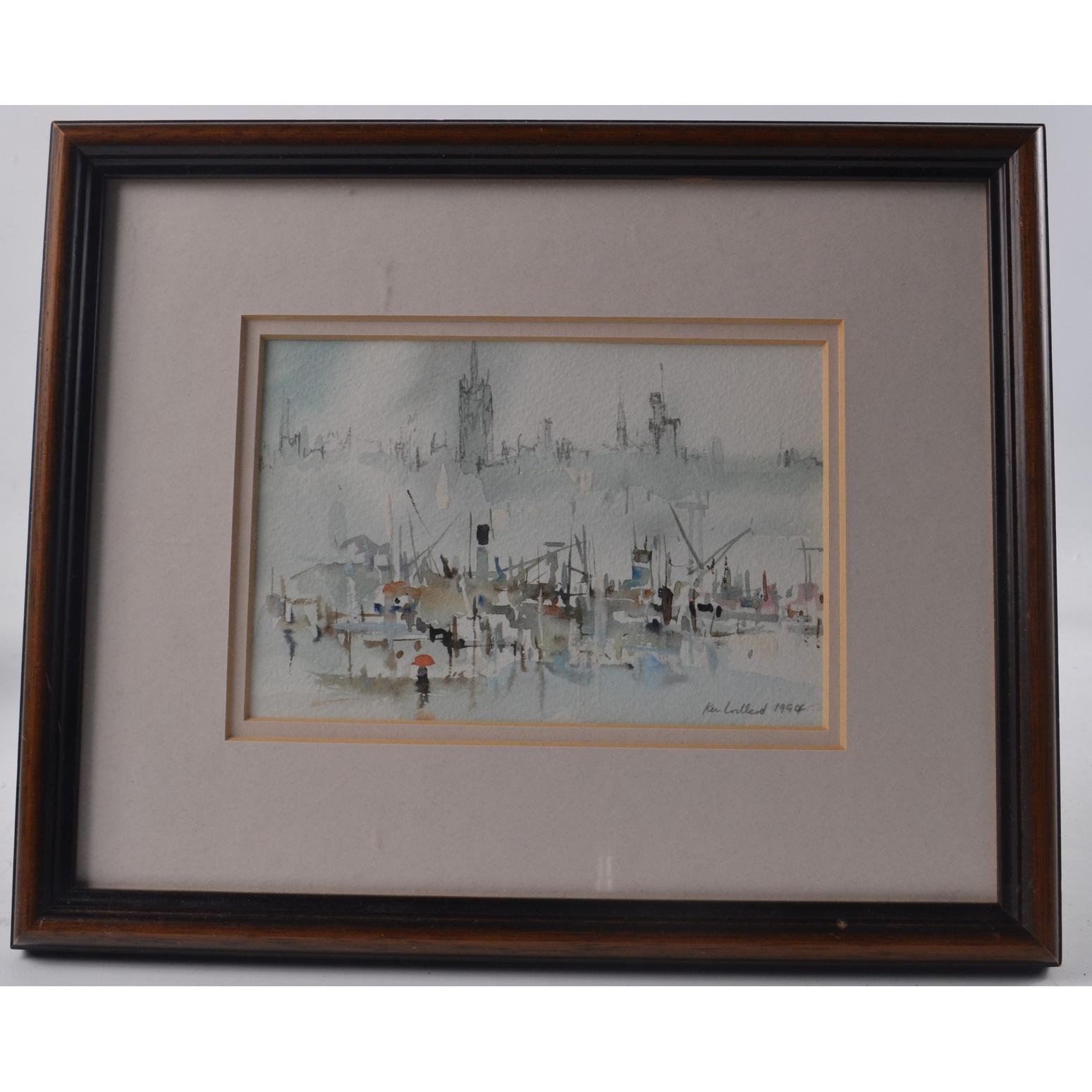 KEN LOCHEAD Scottish 'Aberdeen Harbour' watercolour. Condition Report: Prior to bidding, please consult the additional photos provided and ask all pertinent questions