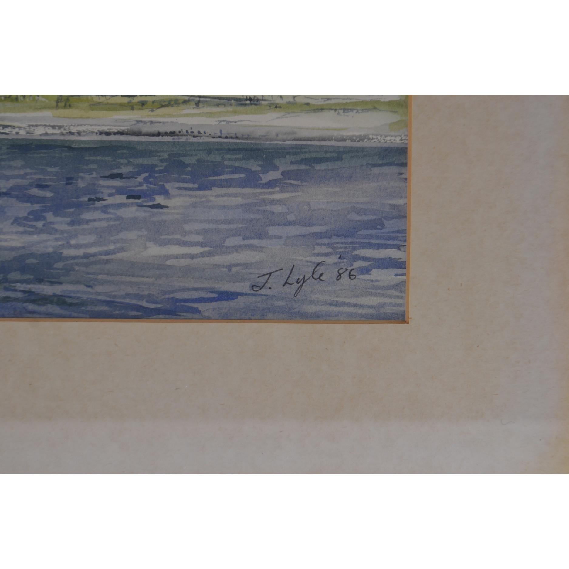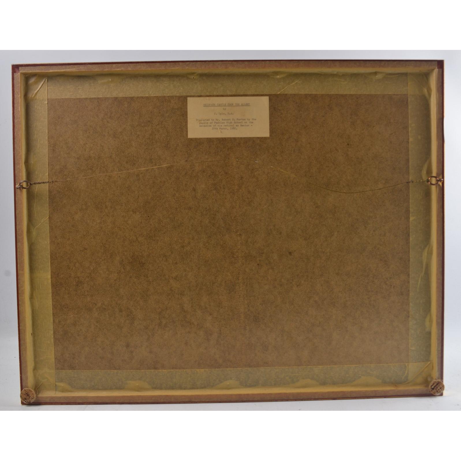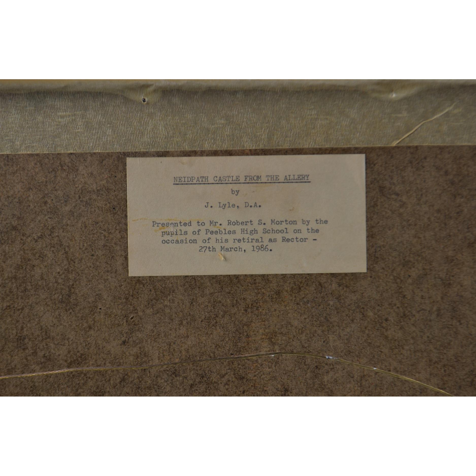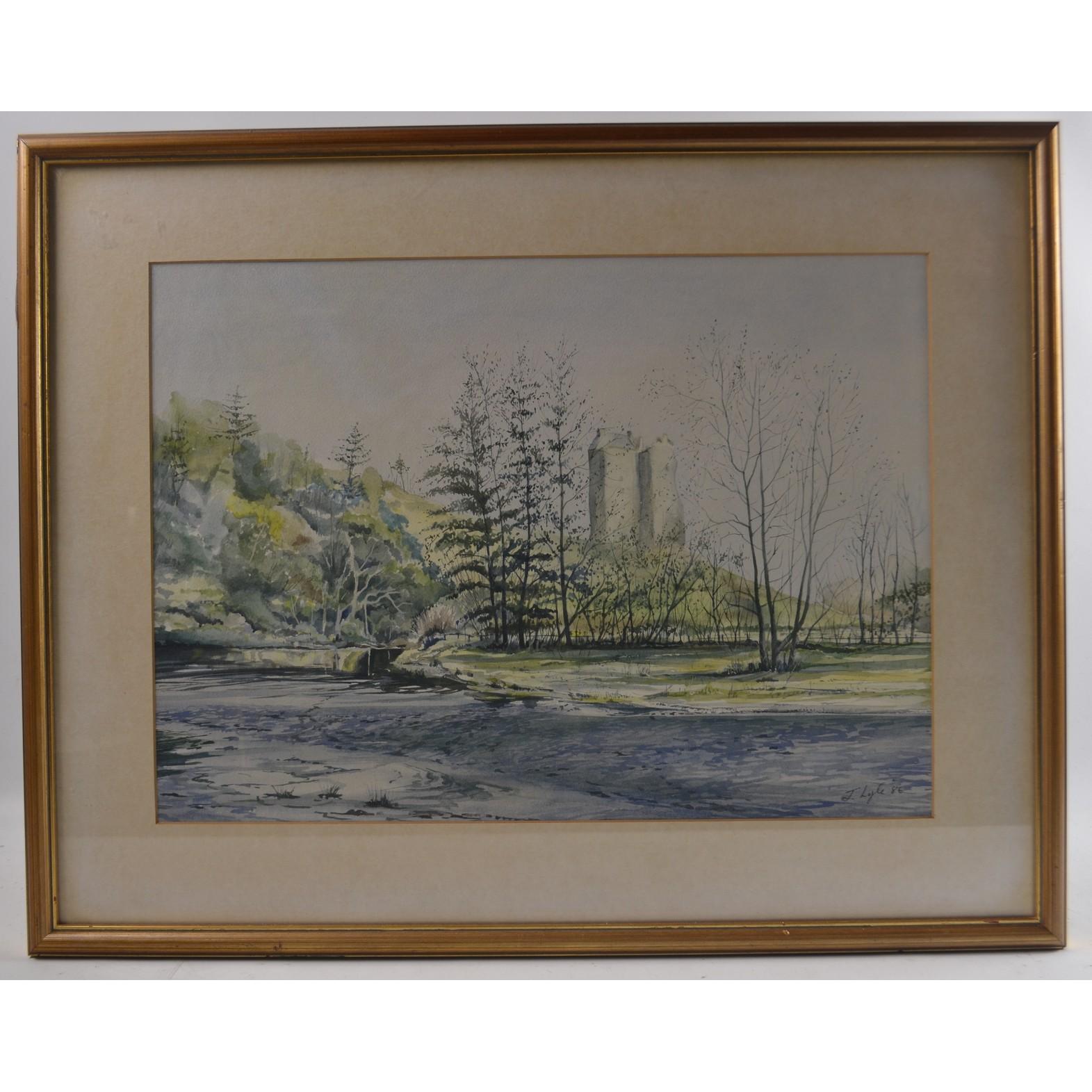 J LYLE 'Neidpath Castle Peebles'1986 watercolour 45cm length x 33cm Height.