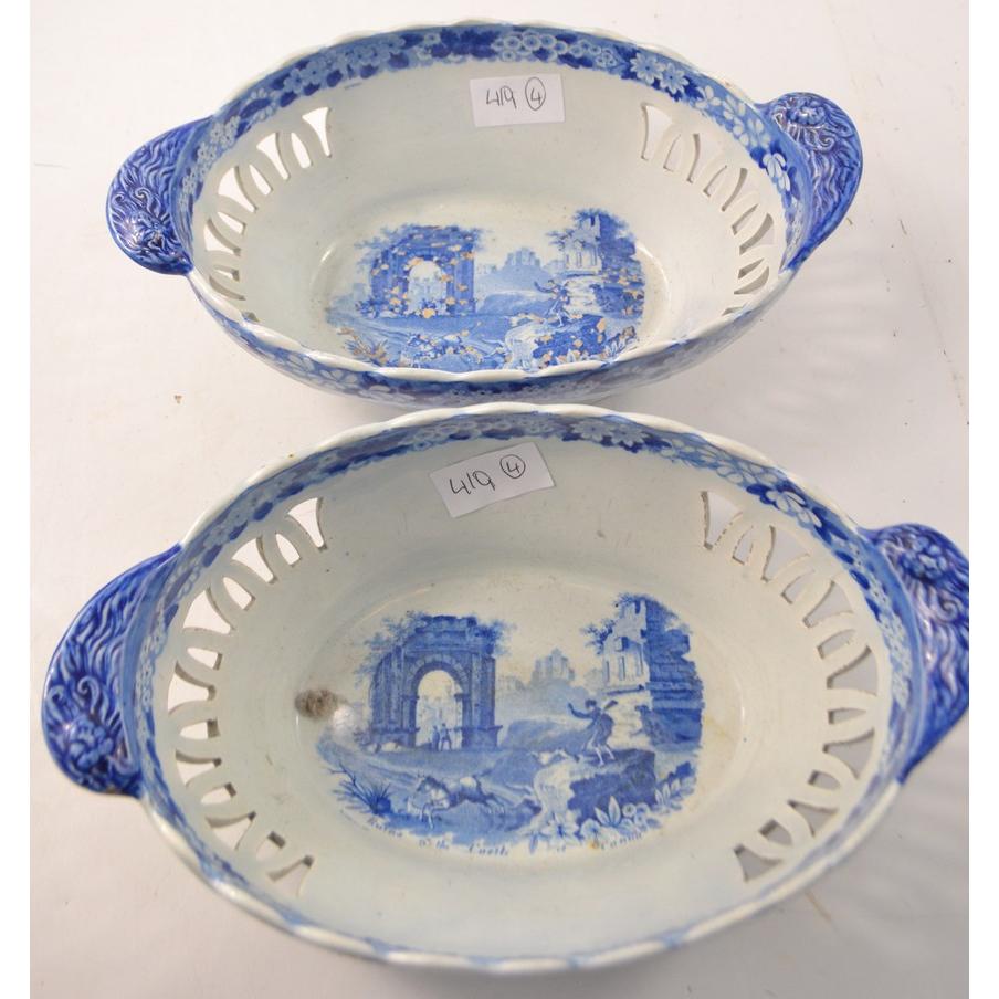 2 Late 19th century DON pottery blue and white chestnut baskets with pierced designW: 26cm approx H: 16cm approx