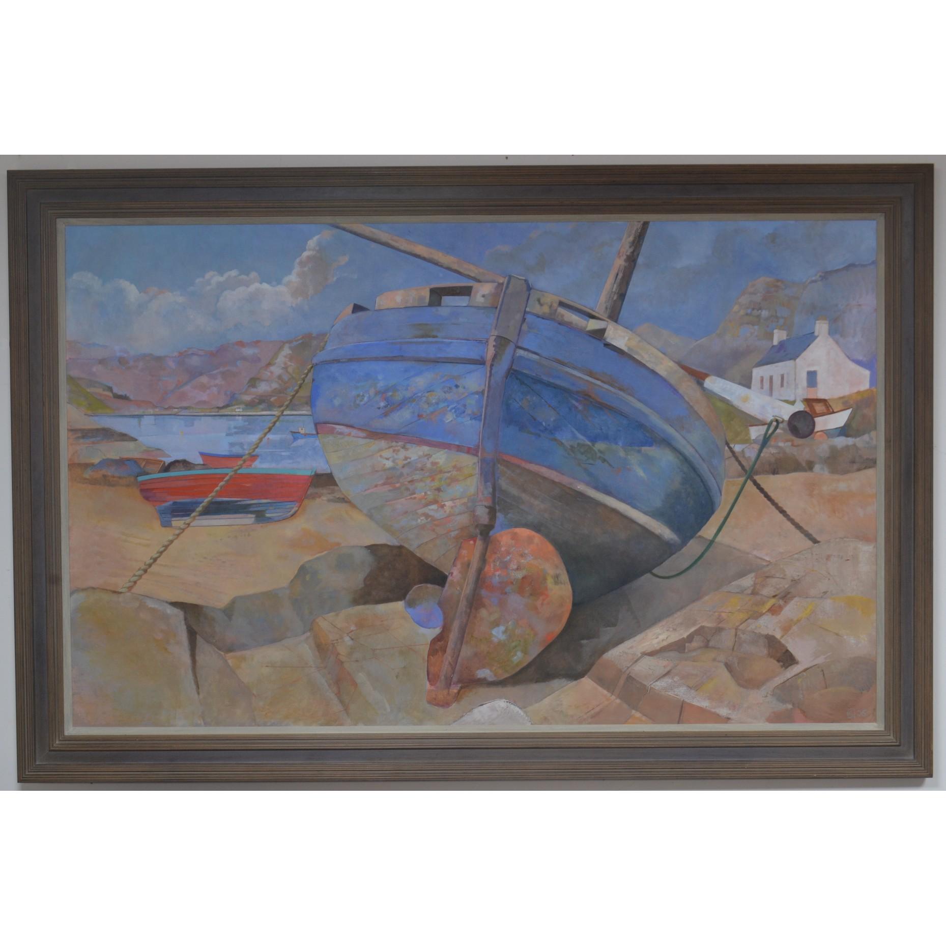 Sophie McPherson British 'Boat' Plockton oil on canvas 6' x 4'.