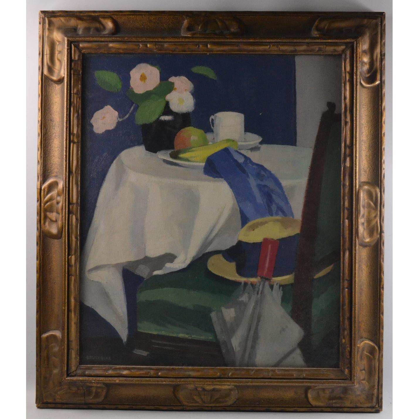 GEORGE TELFOR BEAR Scottish (1876-1973) still life in original frame oil on canvas(painting also verso).