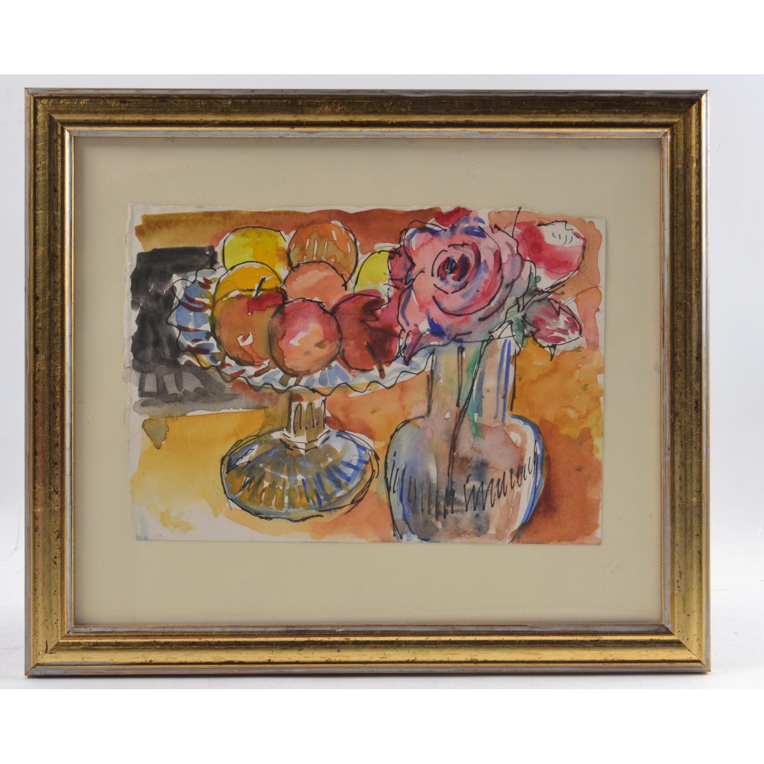 JOHN MCNAIRN Scottish (b1910-2009) 'still life with roses and apples', watercolour