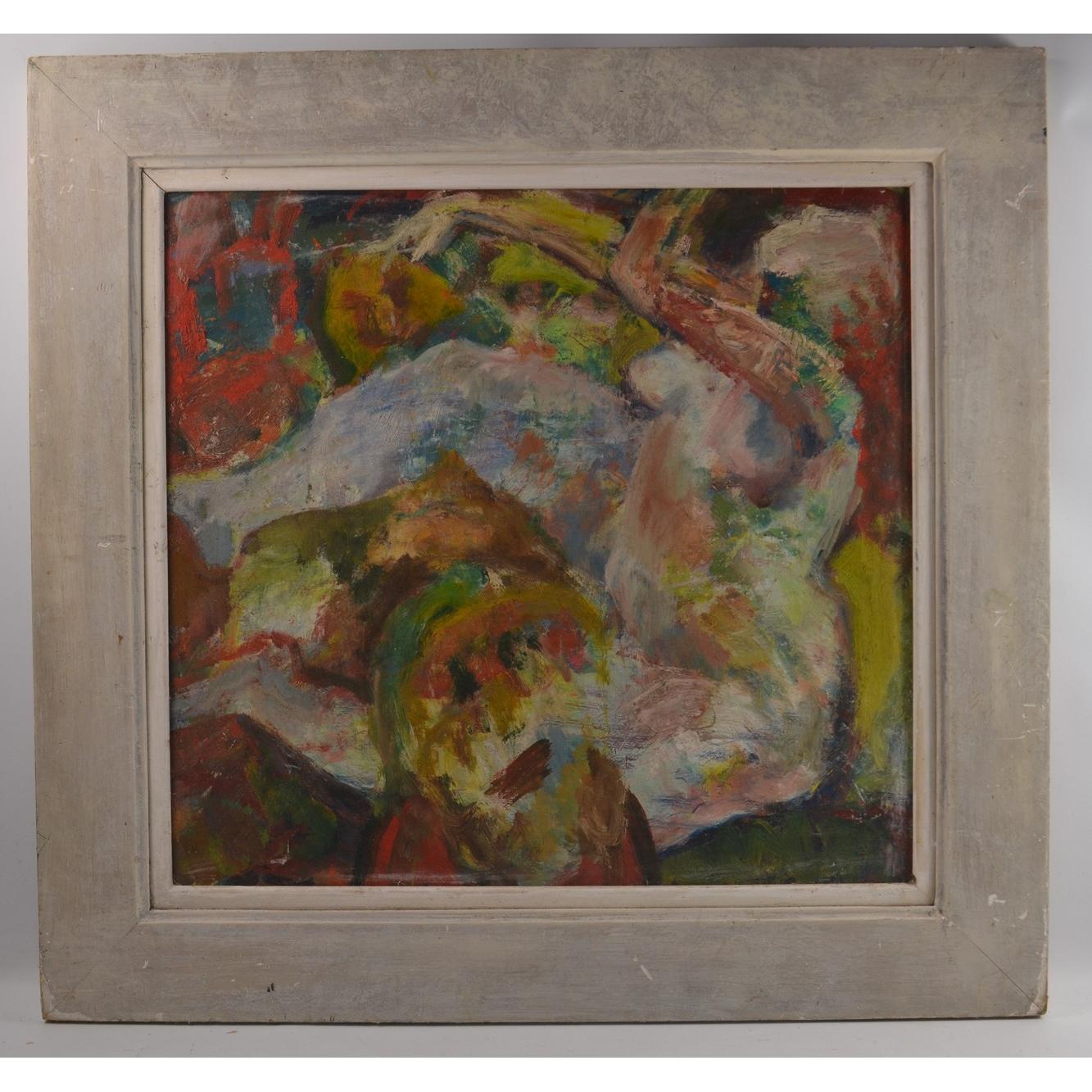 SHEILA MULLEN Scottish (b1942) 'Salome' oil on board. L: 60cm approx H: 56cm approx