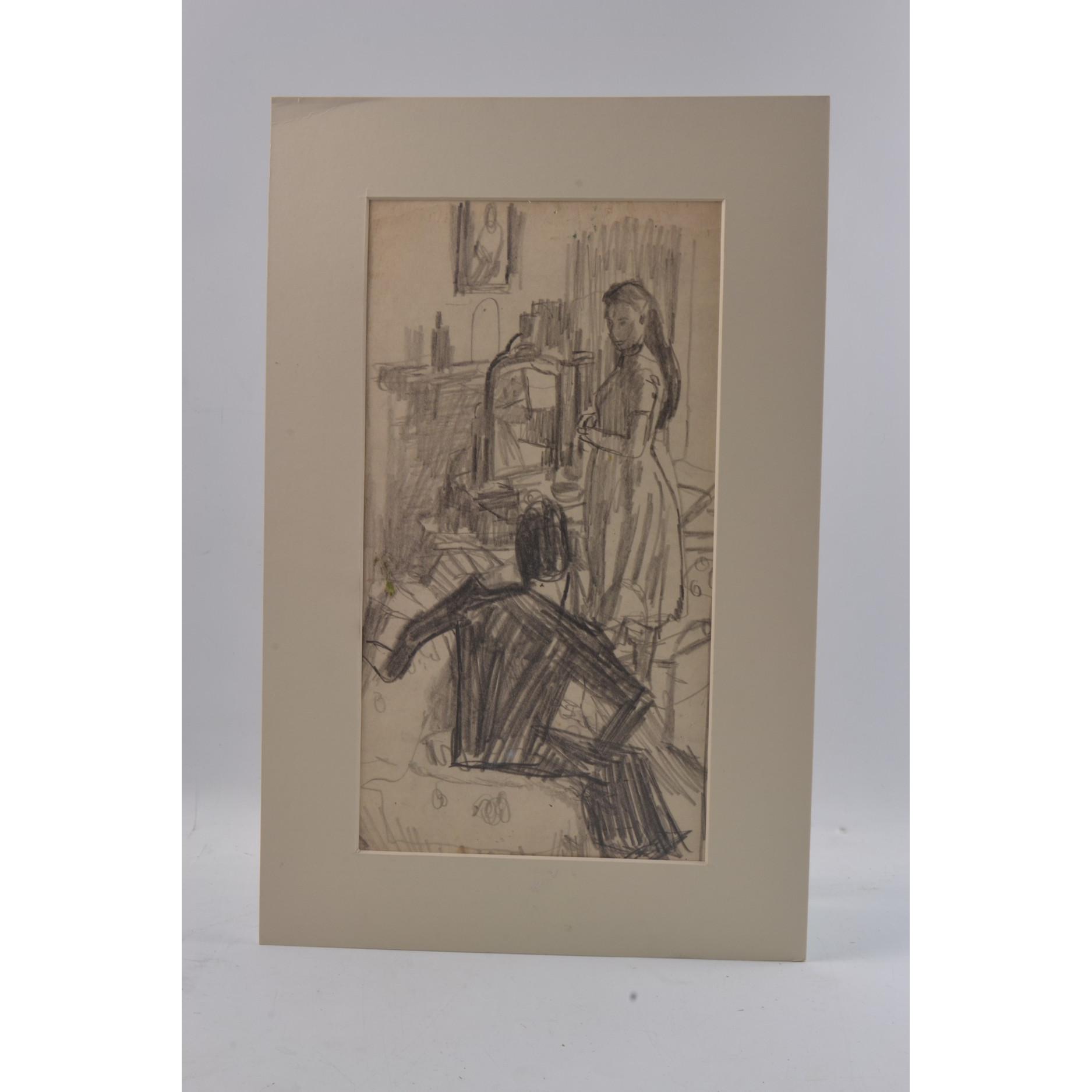 CHARLES McCALL Scottish (1907-1989) 'Interior' pencil sketch ( painted in Paris c1930's). L: 18cm approx H: 30cm approx