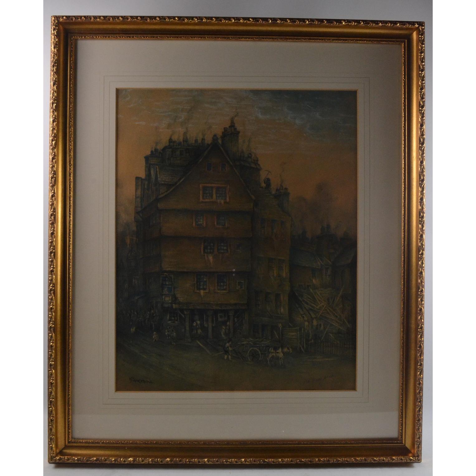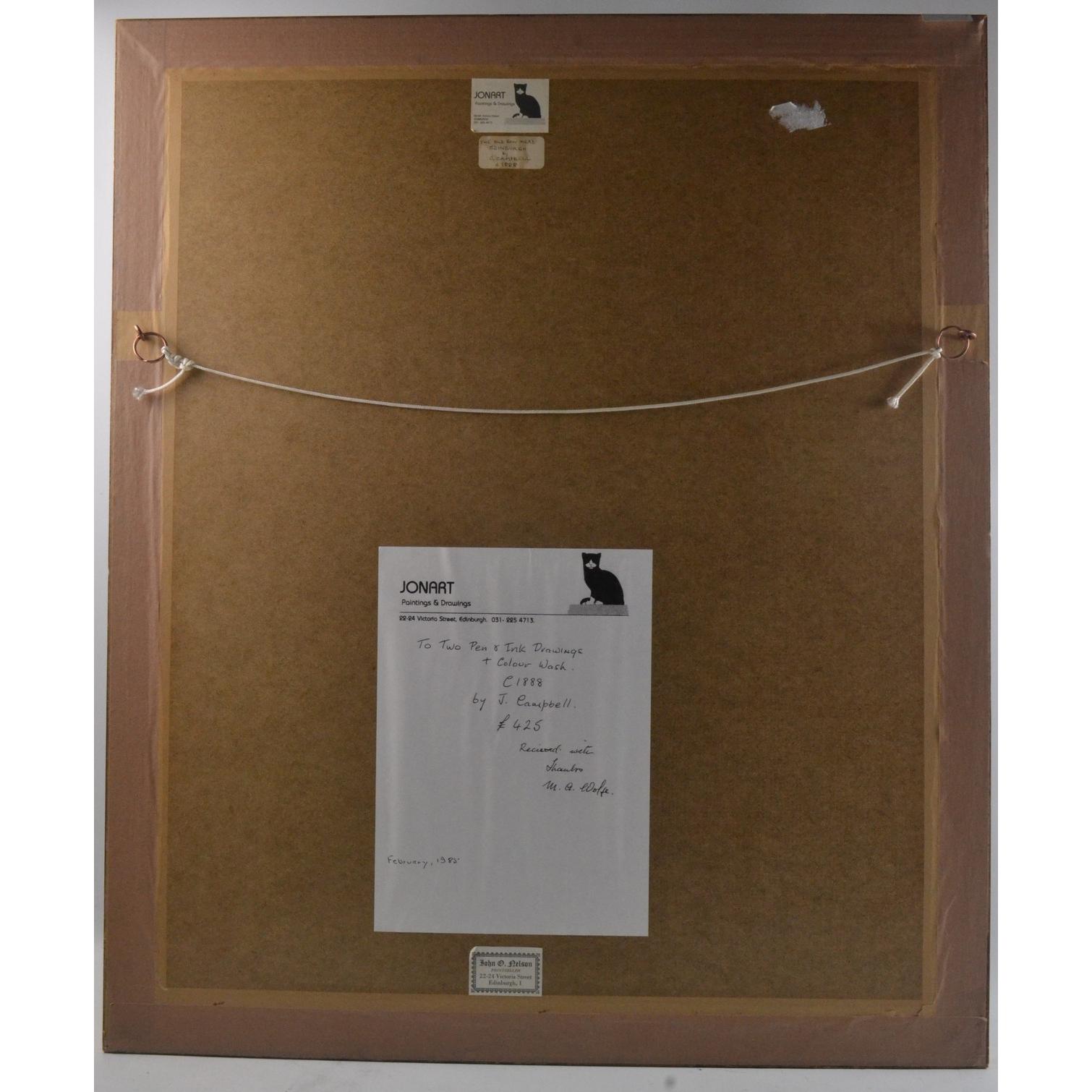 J CAMPBELL Scottish 'The Old Bow Inn, Edinburgh' (c1888) Pen and Ink Drawing with Colour Wash. L: 44cm approx H: 55cm approx