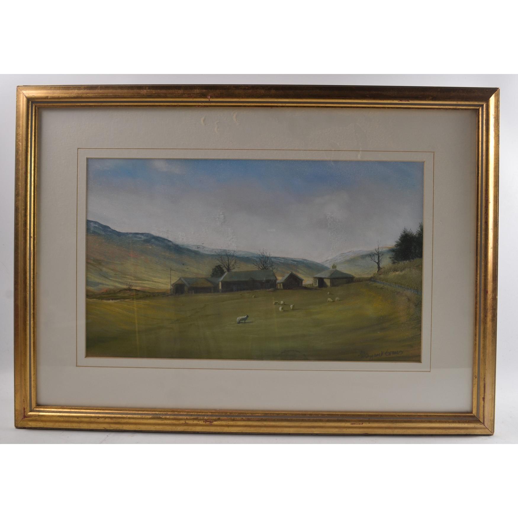 MARGARET EVANS British, 'Farm Steading Glen Cova' pastel.