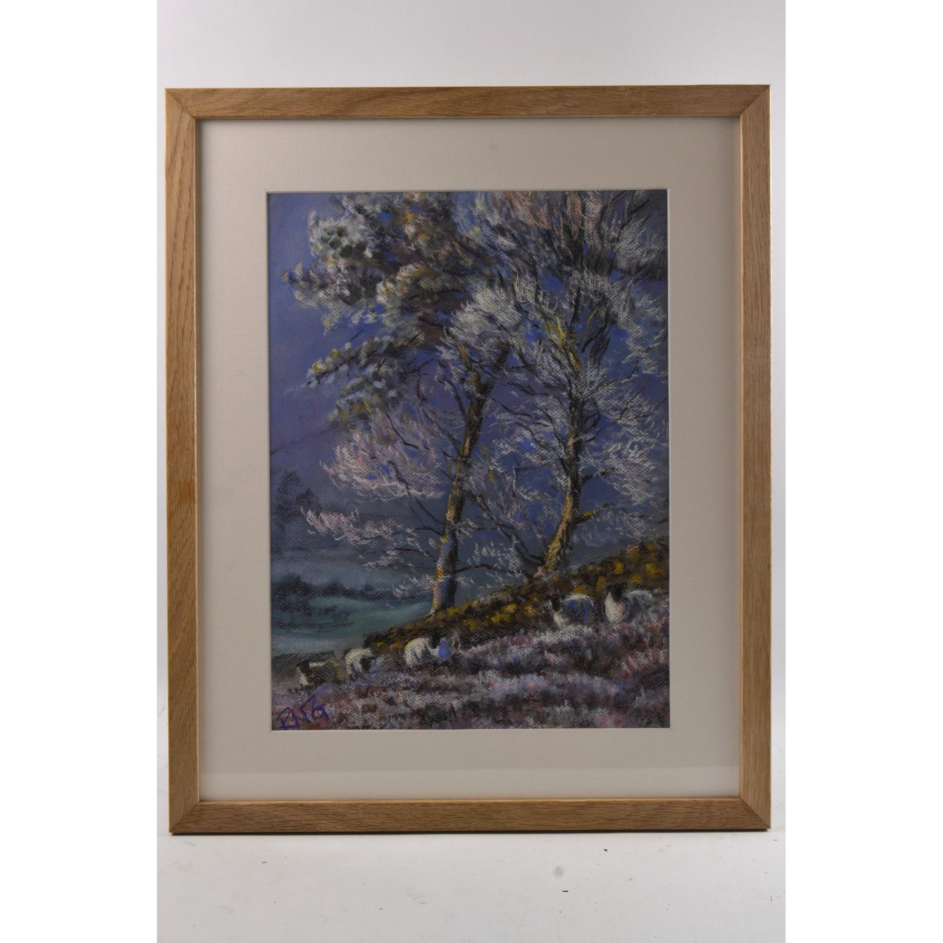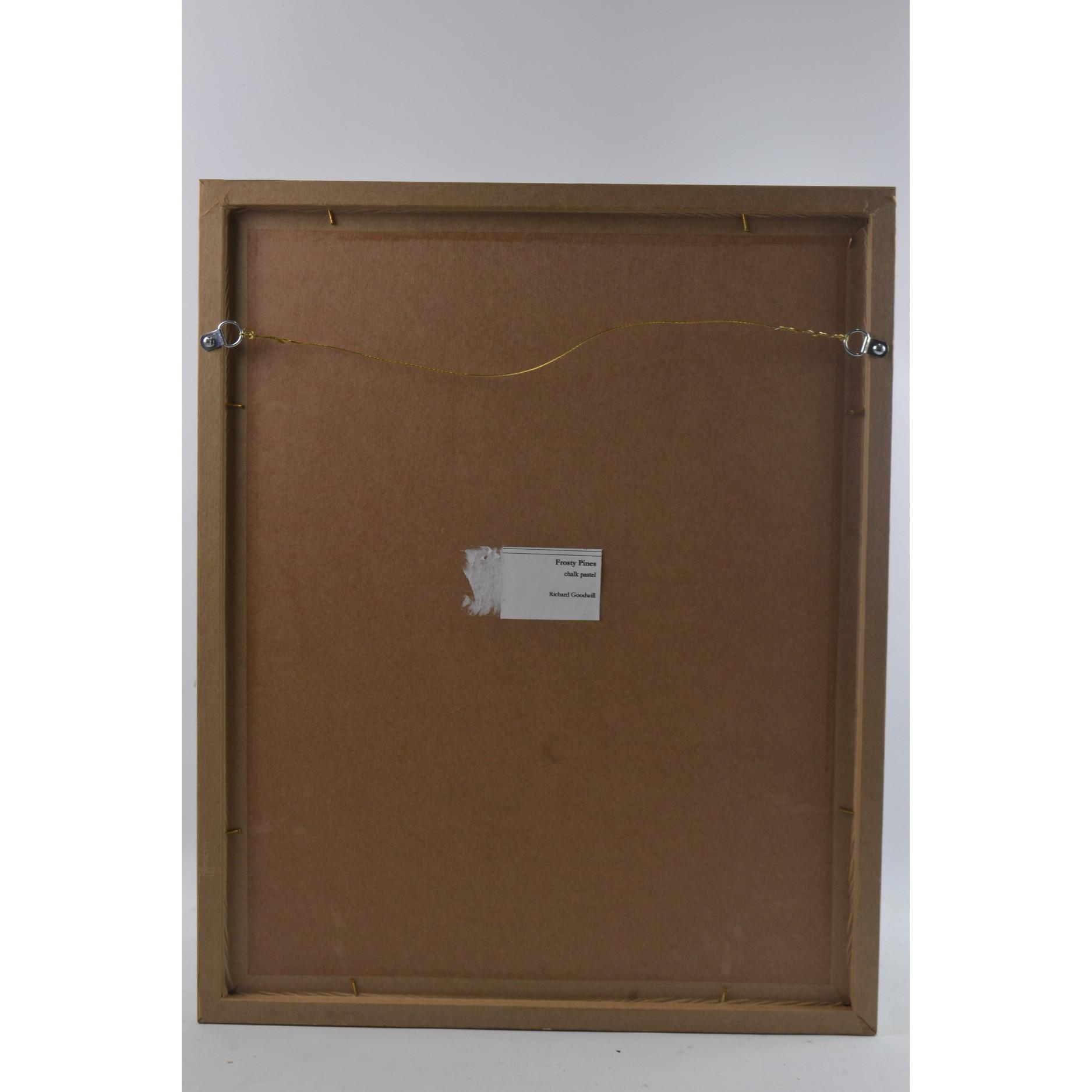 RICHARD GOODWILL BRITISH Local Artist b1946 'Frosty Pines' chalk pastel on paper, on the John Buchan Way, edge of Manor Valley looking down to Stobo