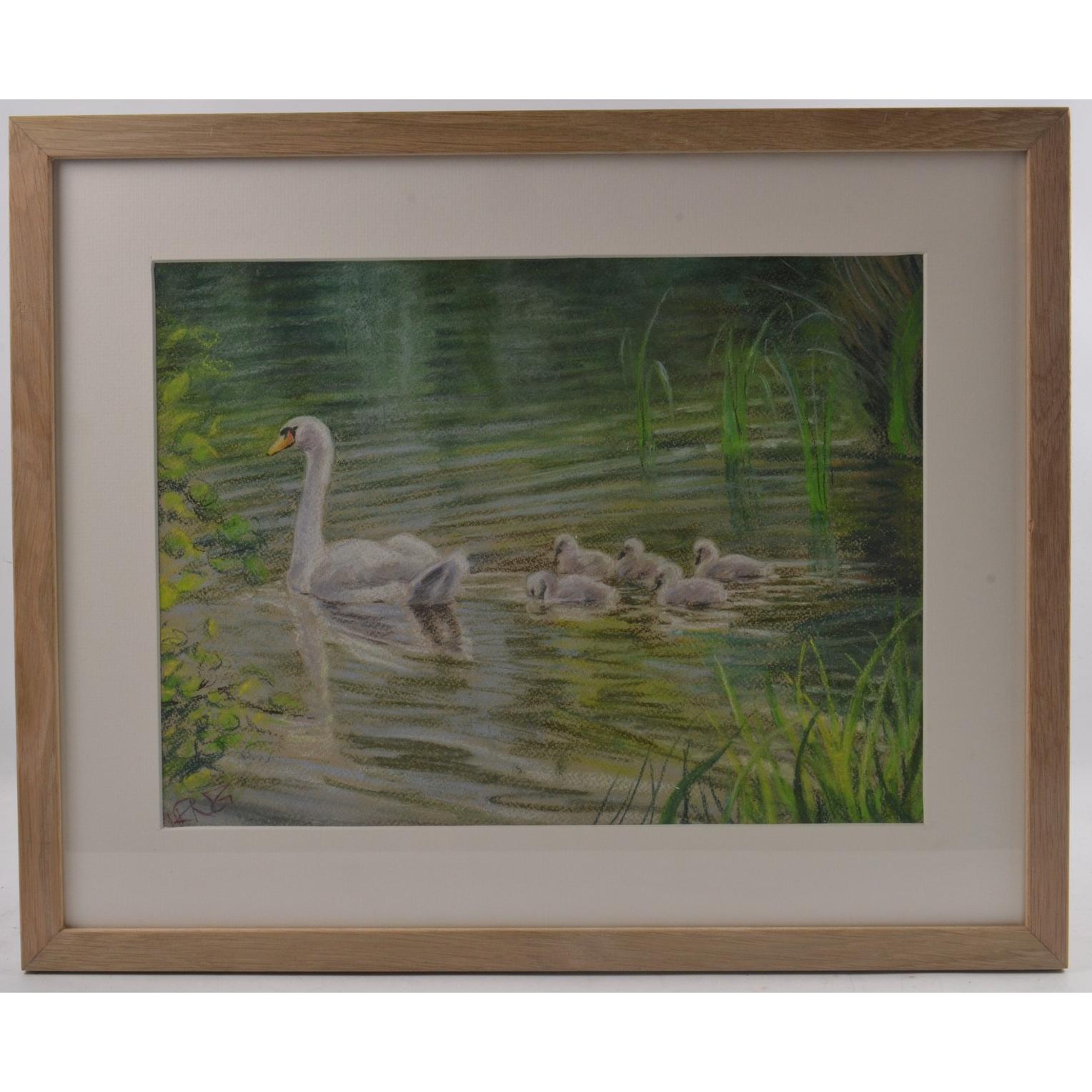RICHARD GOODWILL BRITISH Local Artist b1946 'Swimming lesson' chalk pastel on paper, location at Hallmanor Loch, Manor Valley Scottish Borders.