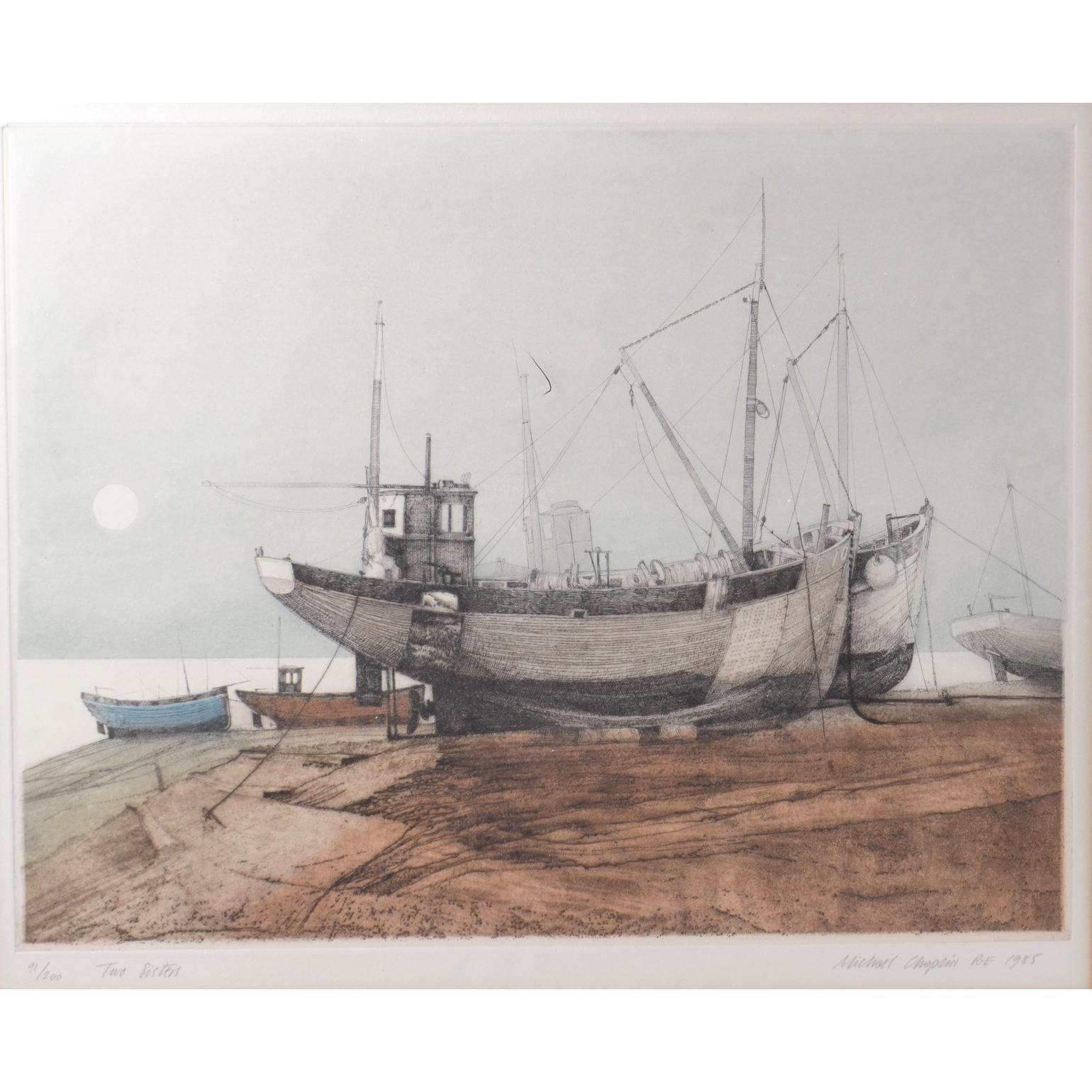 MICHAEL CHAPLIN British Ltd Edition Print 14/200 'Shell Collection' pencil signed artist name and year '85, 40cm Length x 32cm Height, also same artist Ltd Edition print 'Two Sisters' artist signed in pencil '85 40cm length x 32cm Height