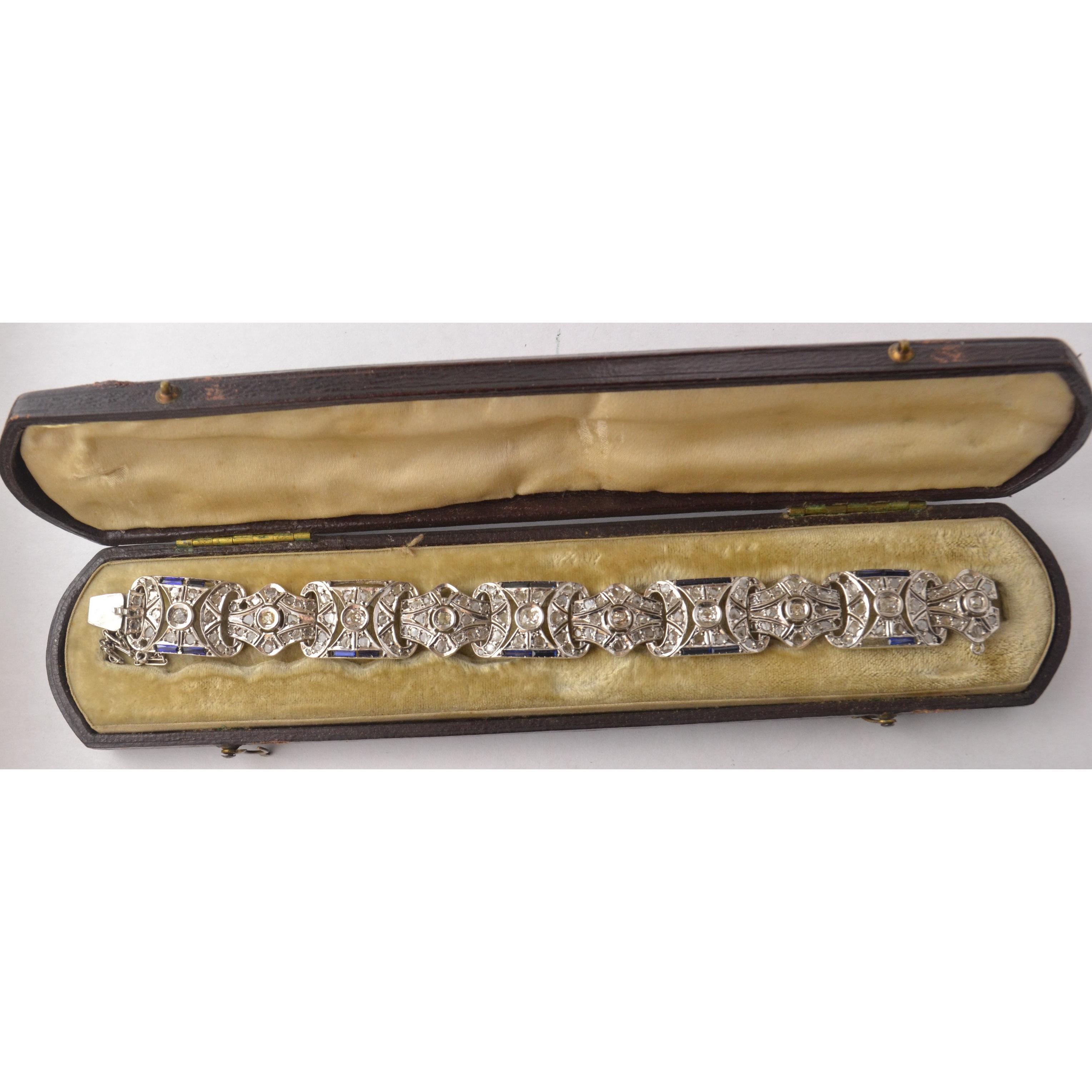 Art Deco white metal, diamond and sapphire bracelet. L:17cm