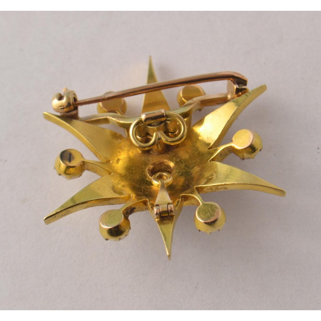 Diamond and pearl star shaped yellow metal broochW: 3.5cm approx Gross weight approx 12.5g