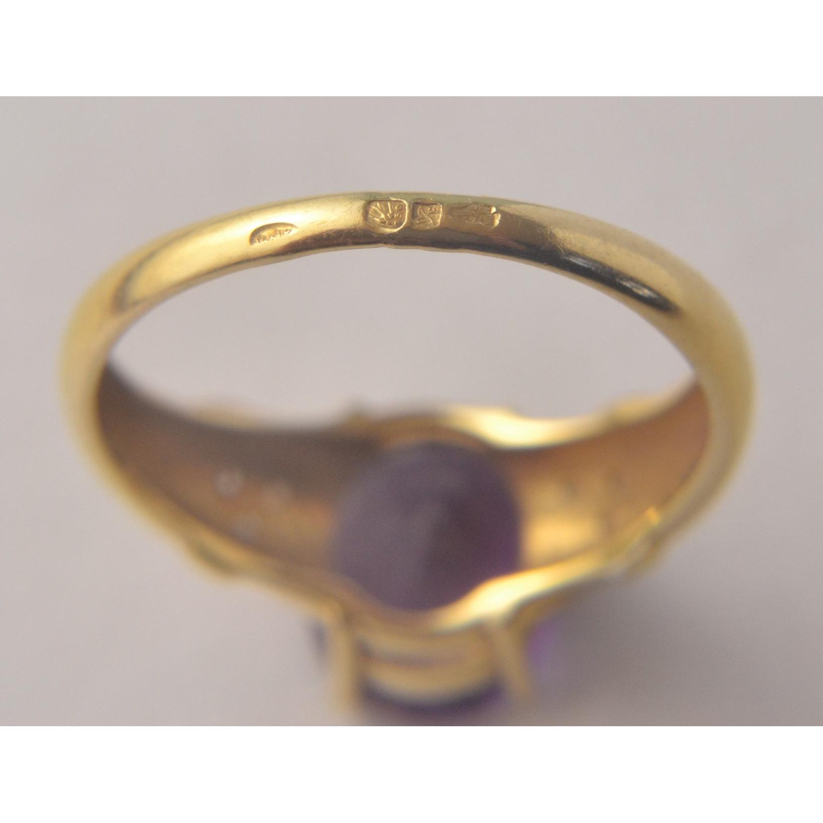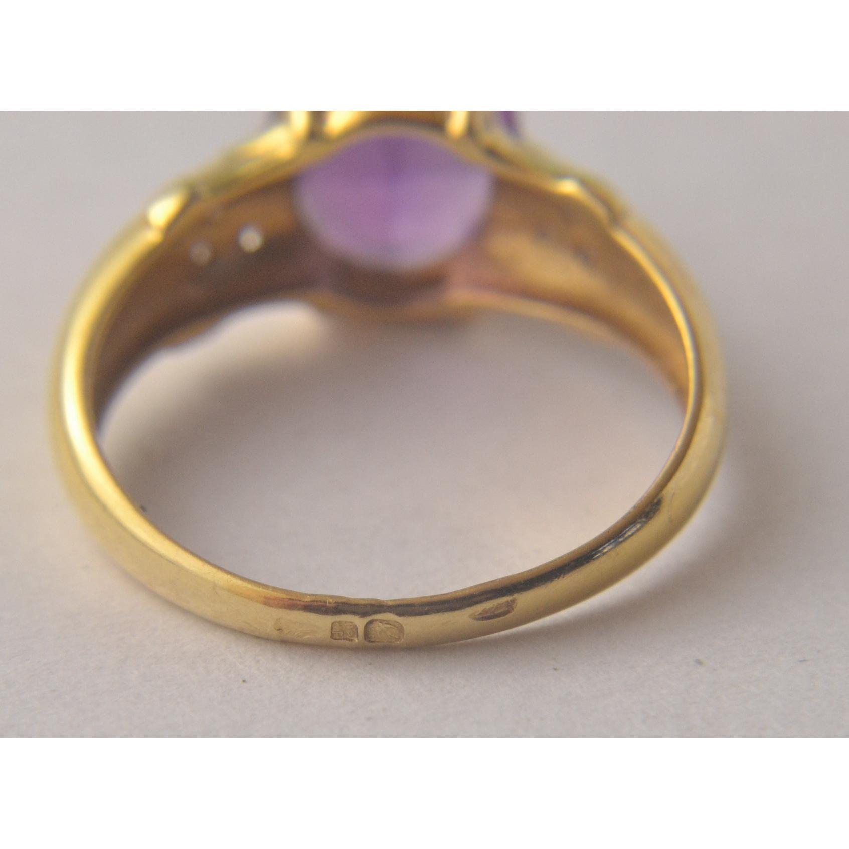 Continental gold marked (possibly French) ring set with oval amethyst and cross bar diamond shoulders. Size OGross weight approx 3.35g